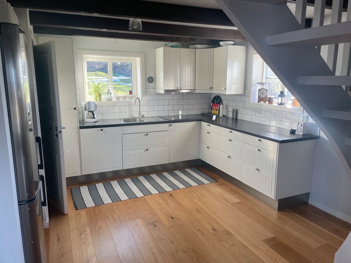 入住2023年春季竣工的漂亮房源,舒適入住。 從房源出發,您會看到神奇的美麗日落。 距離海灘僅幾分鐘路程,可通過一條小徑進入。 兩間較大的臥室配有雙人牀,以及一間較小的臥室,配有80張牀,可輕鬆拉出成160張牀。 設備齊全的現代廚房,配有燈光和漂亮的用餐區域。 該物業是半獨立房屋的一部分,但隔音非常好,並有獨立的露臺,創造了一個適當的私人球體。
