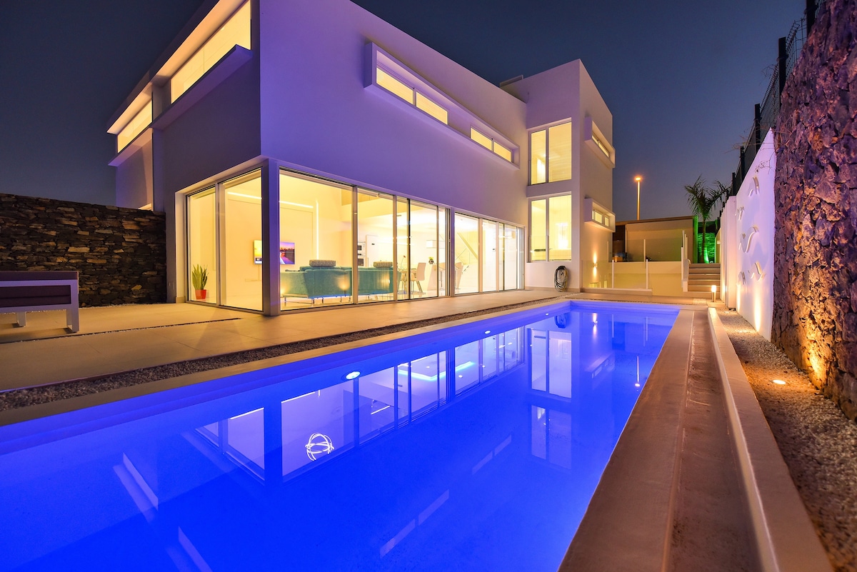 位於梅洛內拉斯獨家區域的全新現代豪華別墅,距離休閒區僅幾公尺。 別墅設有私人泳池、按摩浴缸和水下吊床、4 間臥室(均配備空調和電視)、4 間浴室、花園、可俯瞰泳池的寬敞客廳、設備齊全的廚房、用餐區、Wi-Fi、戶外用餐區、燒烤區、休閒區、健身區和停車場。 從套房的露台可俯瞰馬斯帕洛馬斯的沙丘和燈塔。