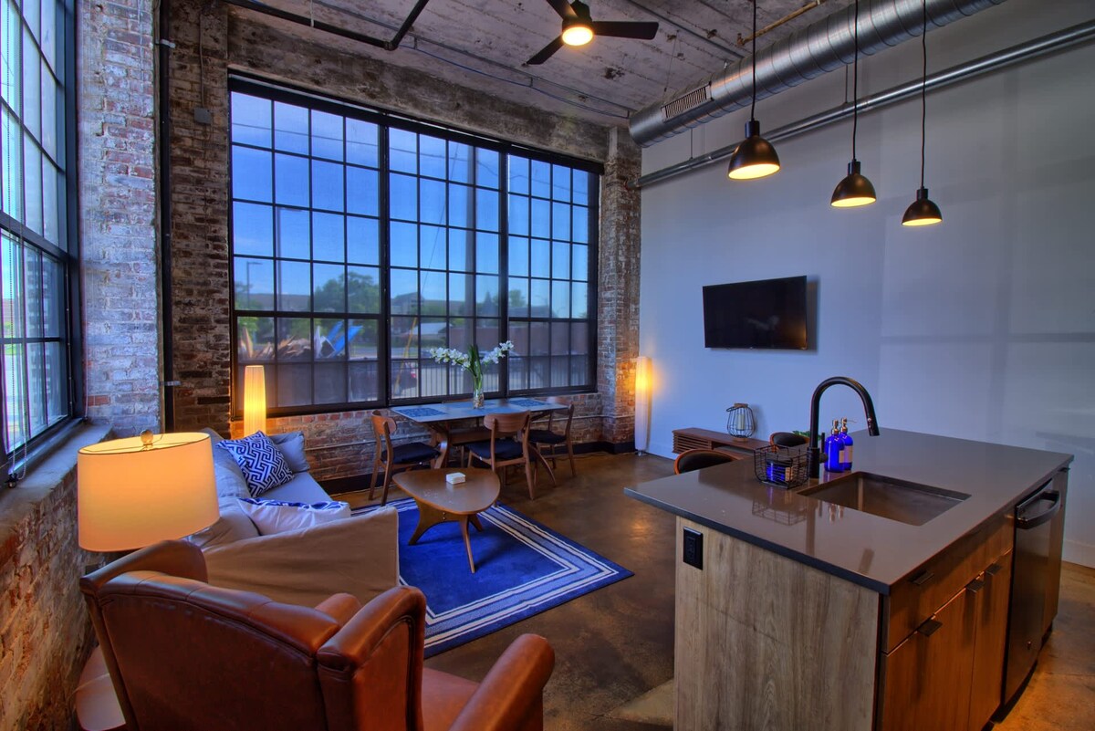 Nash Loft 是一間極簡風格的單間公寓,擁有 12 英尺的高天花板、設備齊全的廚房、黑色不鏽鋼電器和石英檯面、寬敞的步入式衣櫥、可堆疊的洗衣機和烘乾機、設計師設計的浴室、黑色不鏽鋼固定裝置和無框玻璃淋浴間,以及明亮的 7 英尺工業鋼框窗戶,可欣賞樹木林立的街道和下方的商店。 坐落在市中心著名的Locust街,距離SLU、Wells Fargo、BJC和Grove僅幾步之遙。