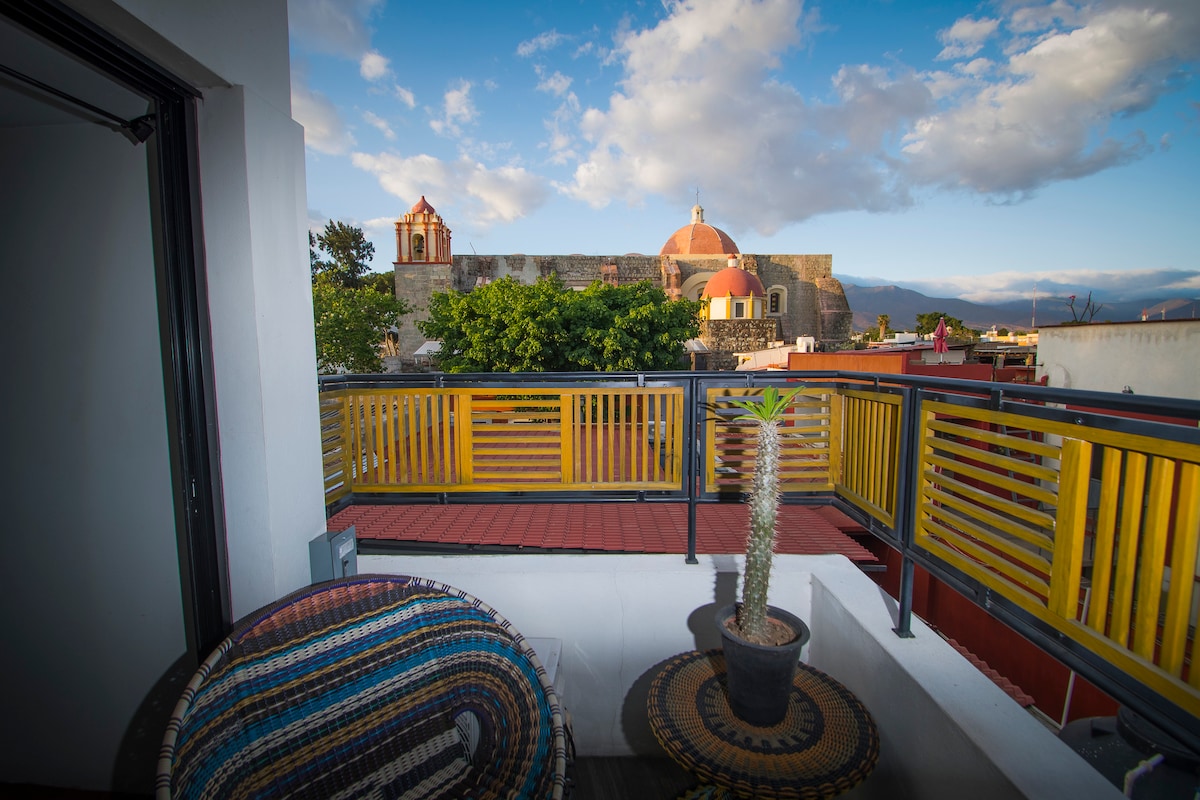 漂亮的迷你閣樓,配有美麗的露臺和俯瞰城市的陽台,距離城市中心僅 4 街區。在一個獨立住宿區域內,共用一些區域。 享受美食、市中心的地標、聖多明哥寺廟、城市大教堂、傳統市場、博物館,距離住宿僅幾步之遙。 您會看到其他旅客,他們和您一樣,享受房源的寧靜、良好的氛圍和舒適。