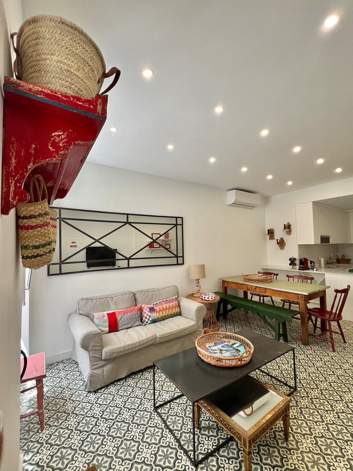 This charming suite, spacious, comfortable and full of natural light, is perfect for couples. Located on the first floor of a pretty traditional townhouse, it is very central, only 5 minutes from the ria, historic centre, restaurants, ferry to the islands (beaches in Olhão are all on the islands) and train station, and has its own private entrance on a picturesque pedestrian alley. On the terraces, with a view over the city, you can prepare and enjoy meals, sunbathe or have a nice cool shower.