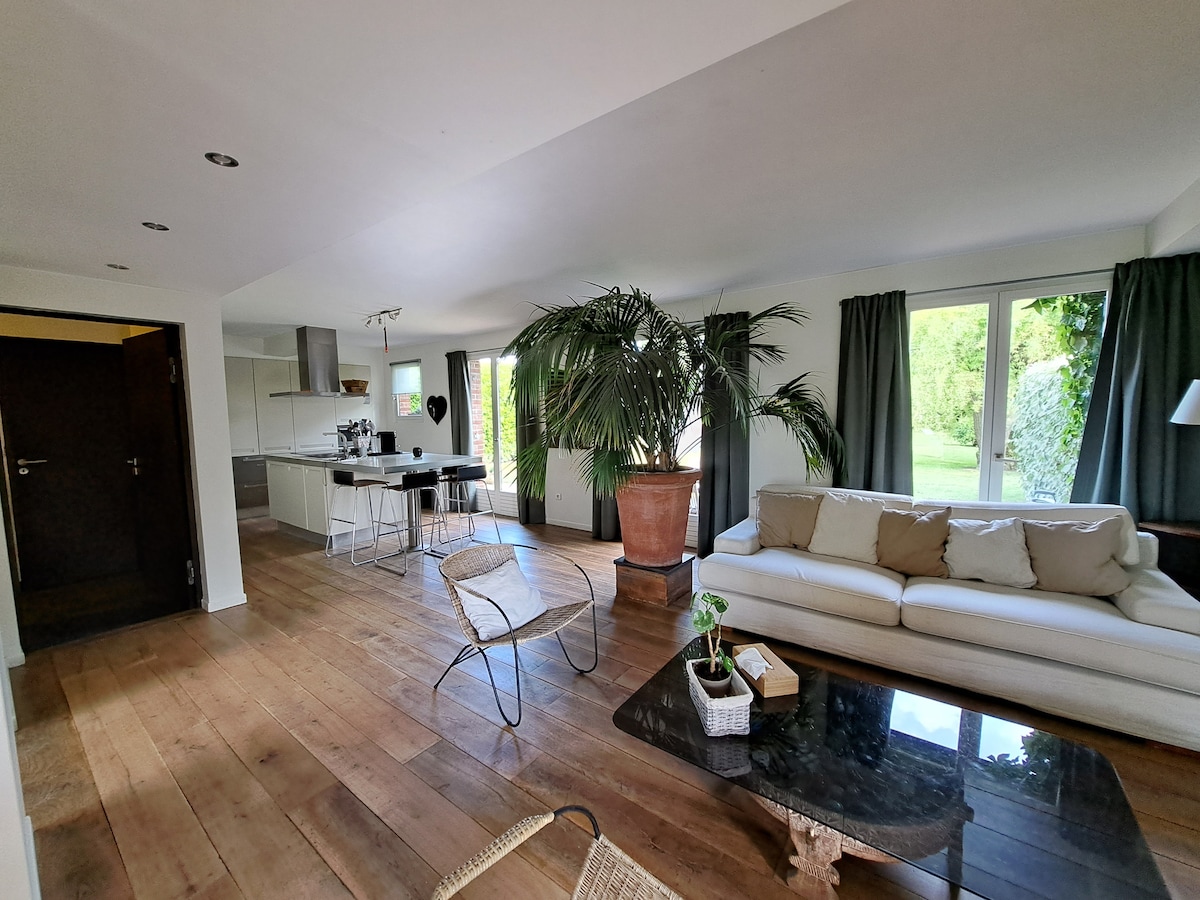 距離機場 5 分鐘、火車站 7 分鐘、開車 15 分鐘到里爾或 5 分鐘到 A1 高速公路……但位於鄉村!我為您提供一個寬敞明亮的 135 平方公尺房子,位於一條非常安靜的街道上,經過全面翻新,充滿魅力。它是全新且設備齊全(高速 WiFi)。 可容納 7 人,有 3 間臥室,床鋪已經為您鋪好。沙發可展開。 提供毛巾和折疊式嬰兒床。 私人停車位。