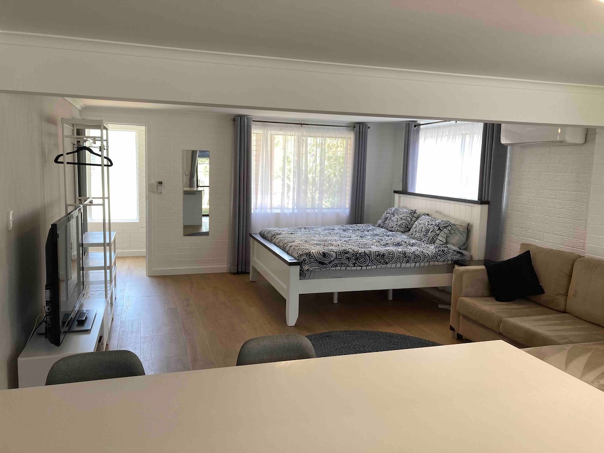 位於Burleigh Heads市中心的全新獨立單間公寓。 從主住宅獨立入口。它位於市中心,但足夠遠離Burleigh Heads村的興奮,在著名的Burleigh海灘度過美好的一天後享受安靜的時光。臥室配有一臺大型壁掛智慧電視、免費WiFi、Netflix、現代小廚房和標準雙人床。大型購物中心距離您的前門只有300公尺的步行距離。
