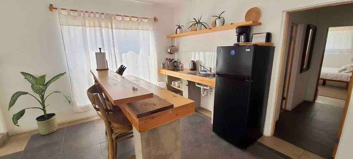 聖安東尼奧德爾馬爾多層海濱別墅的寬敞單間公寓,距離海灘3個街區。 客廳、廚房和洗衣房在內。 4人用餐室、私人露台(設有額外用餐區)和共用屋頂露台(設有燒烤爐、火坑和華麗的海景)。 精緻的藝術感;定制鍛鐵、充滿活力的壁畫。都市共存。 安全且設有門禁的社區、24小時保安、共用泳池、網球場和公園,設有遊樂場。 高速 Wi-Fi。 可以進住4人。