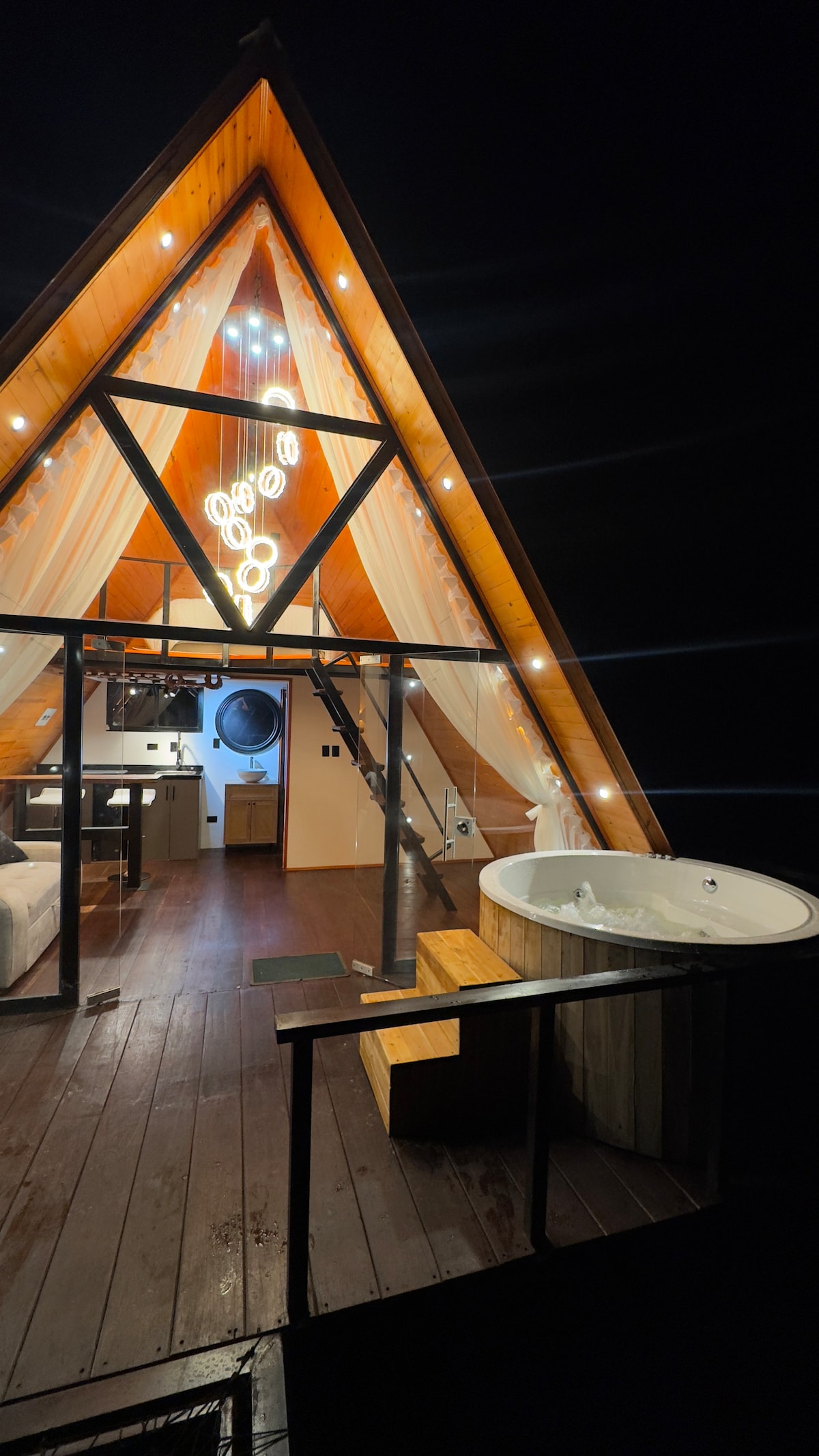 Luxury A-Frame cabin designed exclusively for couples in Colombia’s coffee region. Enjoy a private jacuzzi, relax on the catamaran net, and wake up surrounded by nature and the aroma of coffee. Warm wooden interiors, beautiful views, and complete privacy create a romantic and peaceful experience, perfect for anniversaries, honeymoons, or a quiet getaway for two.