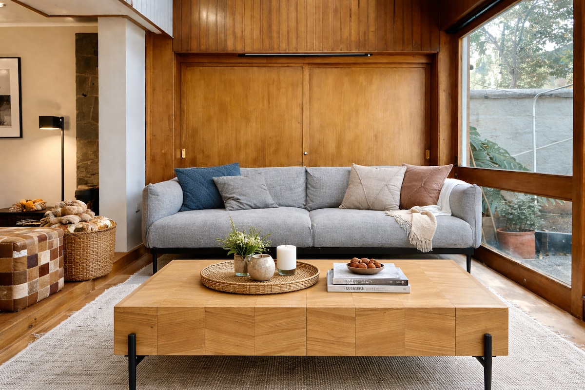 享受這間安靜的中心住宿的簡單。 距離Manquehue地鐵站和Apumanque購物中心2個街區的安全社區。 新建的8 ,私人停車位。 舒適的入口花園主臥室,客廳配有2張牀1個半廣場和日式牀墊,配有供第三位房客使用的設備。 浴室配有半浴缸、烘乾機、毛巾、客廳/餐廳/設備齊全的廚房。 電視和Wi-Fi。冷氣。 我支持房子附近的房東。 提供購物前服務 謝謝