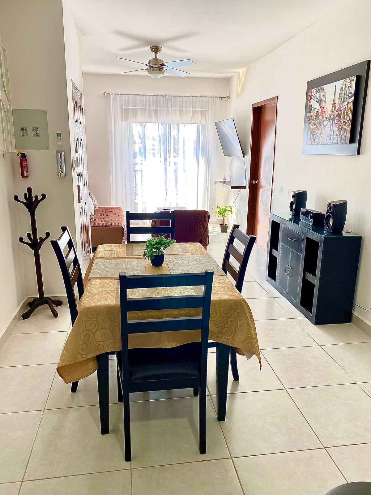 寬敞的公寓,配有Tapanco、空調房間,周圍有旅遊景點、購物廣場,距離歷史中心5分鐘,距離海灘2分鐘,距離韋拉克魯斯水族館1公里。 -配有智慧電視和Tapanco的房間,配有成人和兒童休息網絡。 -現代化的餐廳和廚房。 -主臥室配有加大雙人床、衛浴、衣櫃和智慧電視。 -次要臥室配有雙層床、單人床和衣櫃。 -車庫可停一輛車,有電動門。