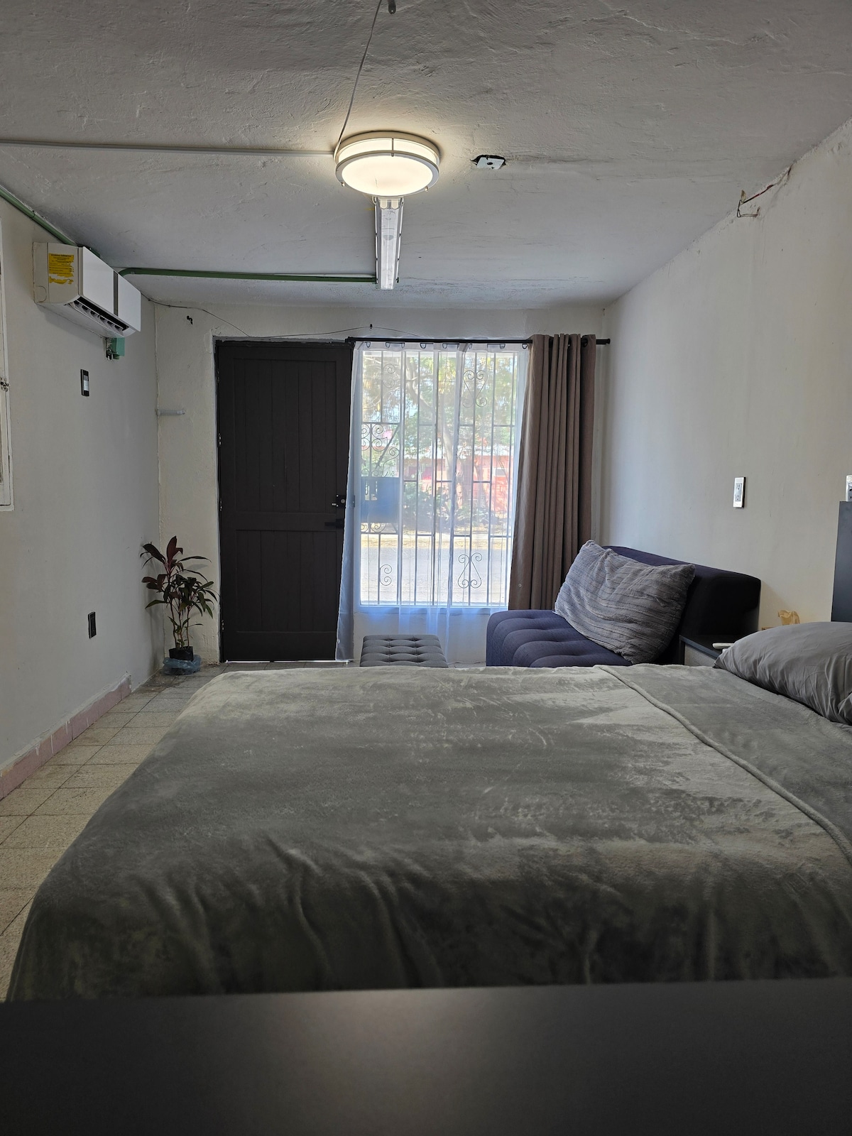 漂亮的公寓,新翻修。快來體驗吧。空間全屬於你。配有雙人床、空調、配有冰箱、微波爐和爐子的全功能廚房。餐具、盤子、平底鍋。全套浴室,冷/熱水。 客廳配有雙人沙發、餐廳和兩把椅子以及寬敞的桌子。智慧電視,可收看 Disney+、Netflix、STAR+、Crunchyroll 等。專用光纖網路。入口在人行道層。位於韋拉克魯斯市中心的邊緣。