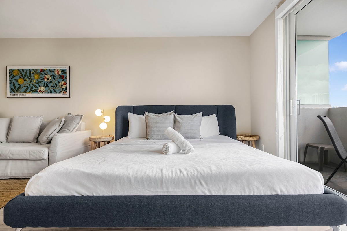 在這間位於48樓的單間公寓頂層公寓中,你可以飽覽邁阿密的天際線和海景。 步行即可抵達音樂會、雞尾酒吧和文化中心(如Wynwood),然後在樓下的泳池邊享用小吃和水療福利。 這間時尚、光線充足的度假屋,景觀優美,交通便利,是夜遊或享受陽光明媚的完美起點。 寬敞、全新,位於邁阿密市中心,令人興奮的住宿!