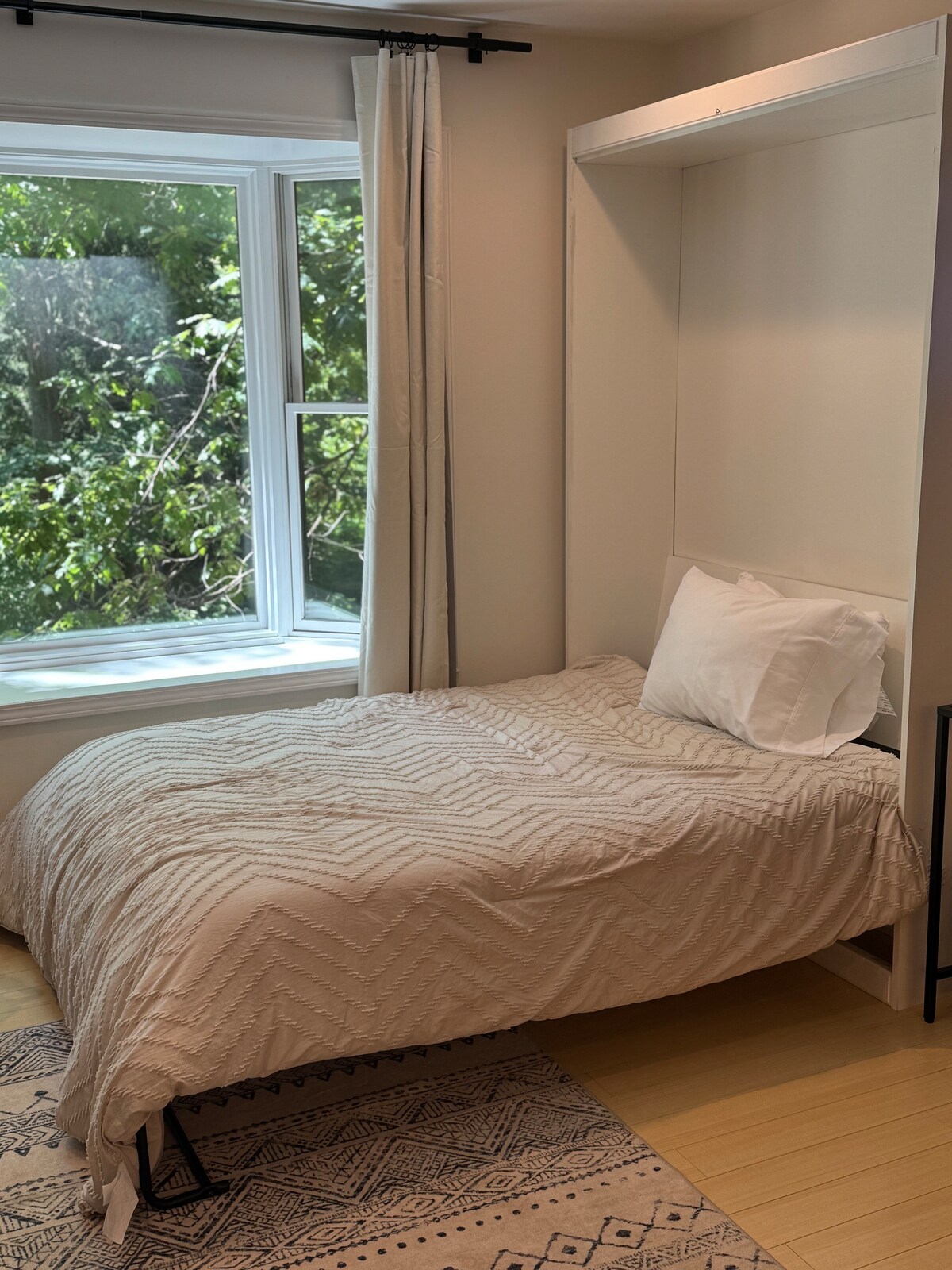 100 yds from the beach, the cozy MERMAID SUITE is best for a young family or 2-3 adult friends. This artsy basement/studio includes: private entrance, kitchenette, unique art, cozy reading/sleeping nook. There is one small window with no lake view but you can see the lake from the upstairs deck. BBQ on the grill. Visit local restaurants, shops & galleries. Hike wooded trails & swim by sandy, dune-grass beaches. . House-trained dogs welcome! Sorry no cats (allergies)
