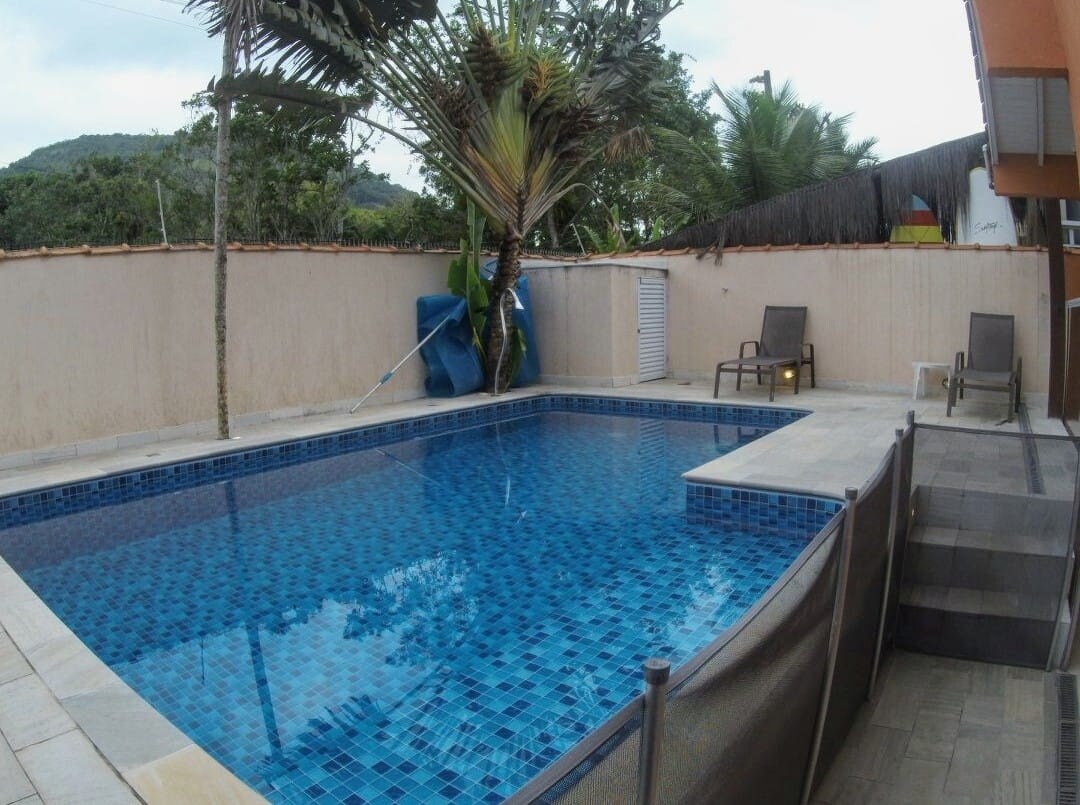房源最多可容納11人,通風良好,位於有24小時保安的封閉式公寓內,靠近拉戈伊尼亞海灘、瀑布和當地商店。有2間套房、2間臥室、4間浴室、空調、按摩浴缸;游泳池、設備齊全的廚房、寬敞的客廳、配有燒烤設備的美食區、撞球桌、日光浴甲板、Wi-Fi和後院,供您的寵物玩耍。6個車位。適合全家和「老年人」。在一個被大西洋森林美景所包圍的房子裡享受烏巴圖巴!