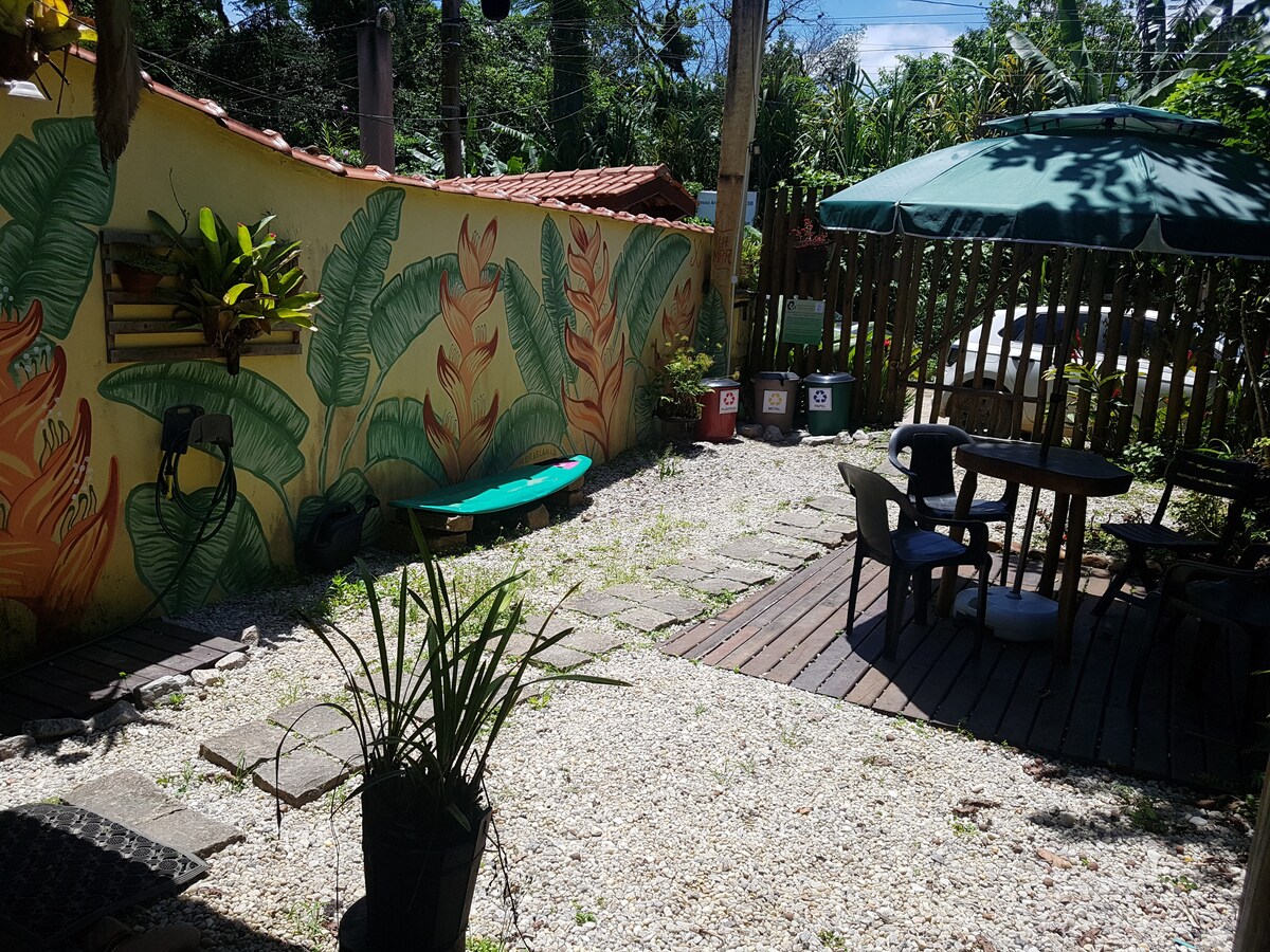 單間公寓位於Mata Atlantica森林中間的公寓內。 單間公寓設有全套廚房、烤箱、空調、Sky電視(有趣的高清2021 )、WiFi (無住宿)和美味的陽臺! 浴室很寬敞,淋浴間很美味。 房源家具齊全,配備家電和廚房基本用品。 它有兩張標準雙人牀和一張雙人沙發牀! 您會感覺在大西洋森林的中間,但幾乎在海邊:)