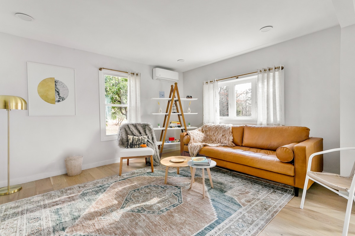 現代和鄉村小木屋,距離紐約市不到2.5小時,坐落在卡茲奇山脈;設備齊全,完美的度假/休閒/滑雪小木屋-安靜、私密-距離貝萊爾和普拉特基爾山不到15分鐘-距離卡茨基爾健身中心(配有奧林匹克大小的游泳池)幾步之遙,步行即可抵達聯合格羅夫釀酒廠;皮艇和農夫市場5分鐘車程。 室內壁爐/室外火坑。非常適合遠距工作、家庭或浪漫度假。 享受遠足、釣魚、當地商店、古董、藝術畫廊、餐廳。