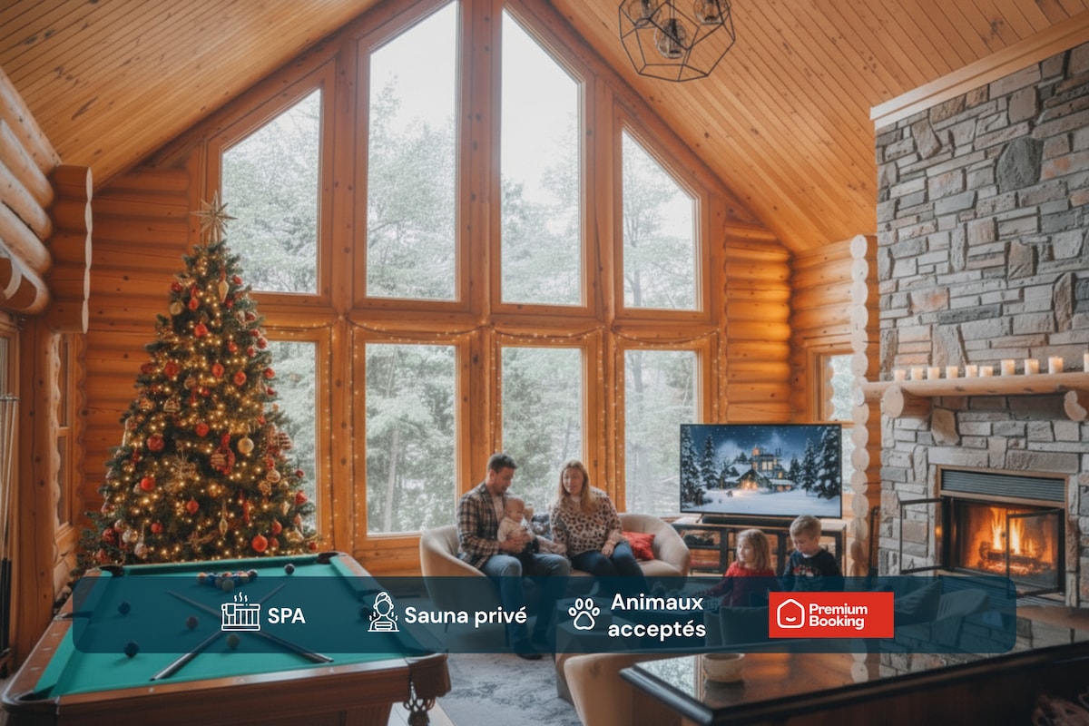 ❄️ Enjoy a Winter Retreat in Our Chalet Nestled in the Heart of the Mountains CITQ: 234780 | Expiry: 2026-11-20 🏋️♂️ Gym at reception ✅ Year-round access to private sauna and spa ✅ Fiddler Lake offers a peaceful setting to enjoy snow-covered landscapes (3 min) ⛄ ✅ Included access to 2 pools, tennis court, canoes, and kayaks 🏊🎾🛶 ✅ Tennis club in Saint-Sauveur (18 min) 🎾 ✅ Internet Starlink 150 MG/S
