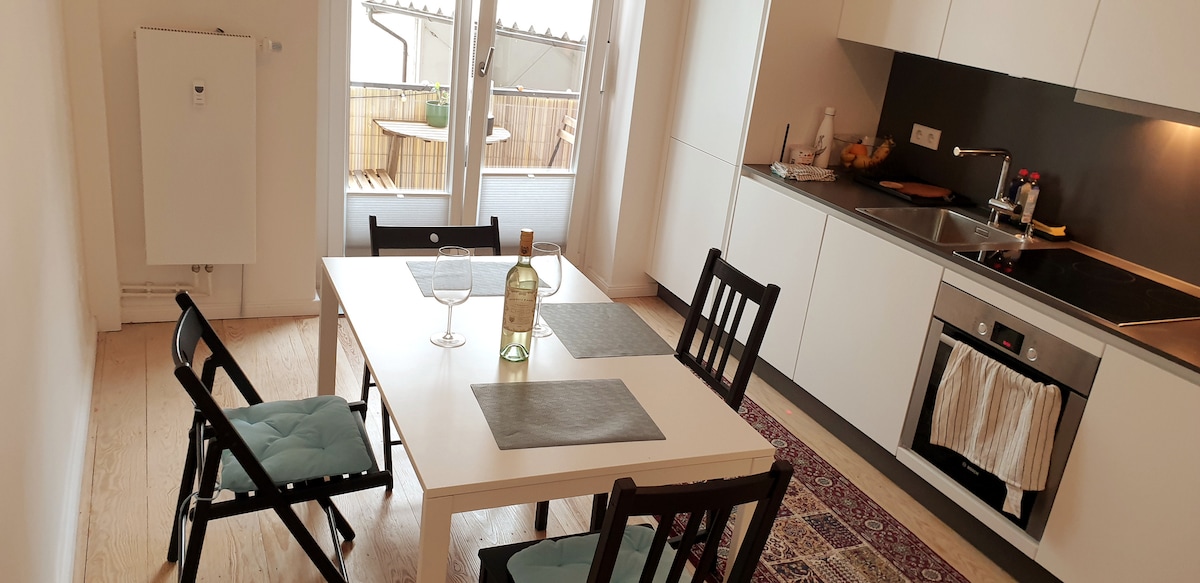 This spacious, loft-style flat is centrally located between the popular Schanze/Altona districts – right in the heart of the action, yet quietly tucked away in a green courtyard. The bedroom offers a relaxing retreat, while the living/working/dining area with its own tea/coffee station invites you to linger. The large terrace with seating area is a wonderful place to relax. PLEASE NOTE: The entrance area (living/dining area) is passed through when coming and going, and the kitchen is shared.