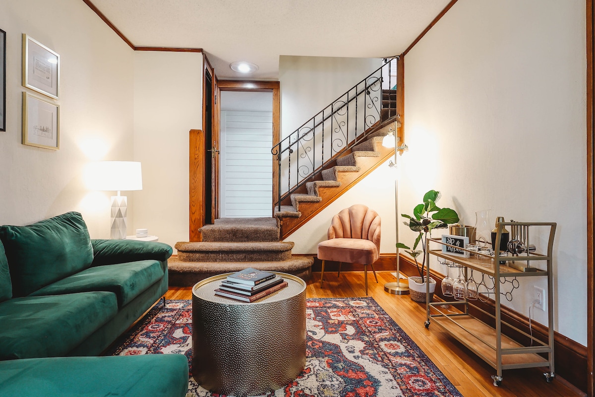 位於市中心,陽光充足、現代化和寬敞的整套房源。 非常適合家庭入住、女孩度假、新娘淋浴、嬰兒淋浴等。步行即可抵達數百家商店和餐廳。距離市中心綠道自行車道一個街區。距離上城中心半英里,距離市中心2.5英里,距離湖泊9個街區,距離美食街不到1英里,距離機場和美國商場12英里(開車18分鐘)或距離美國銀行體育場2.8英里。非常好的佈局、新鮮的油漆和地板、現代家具。