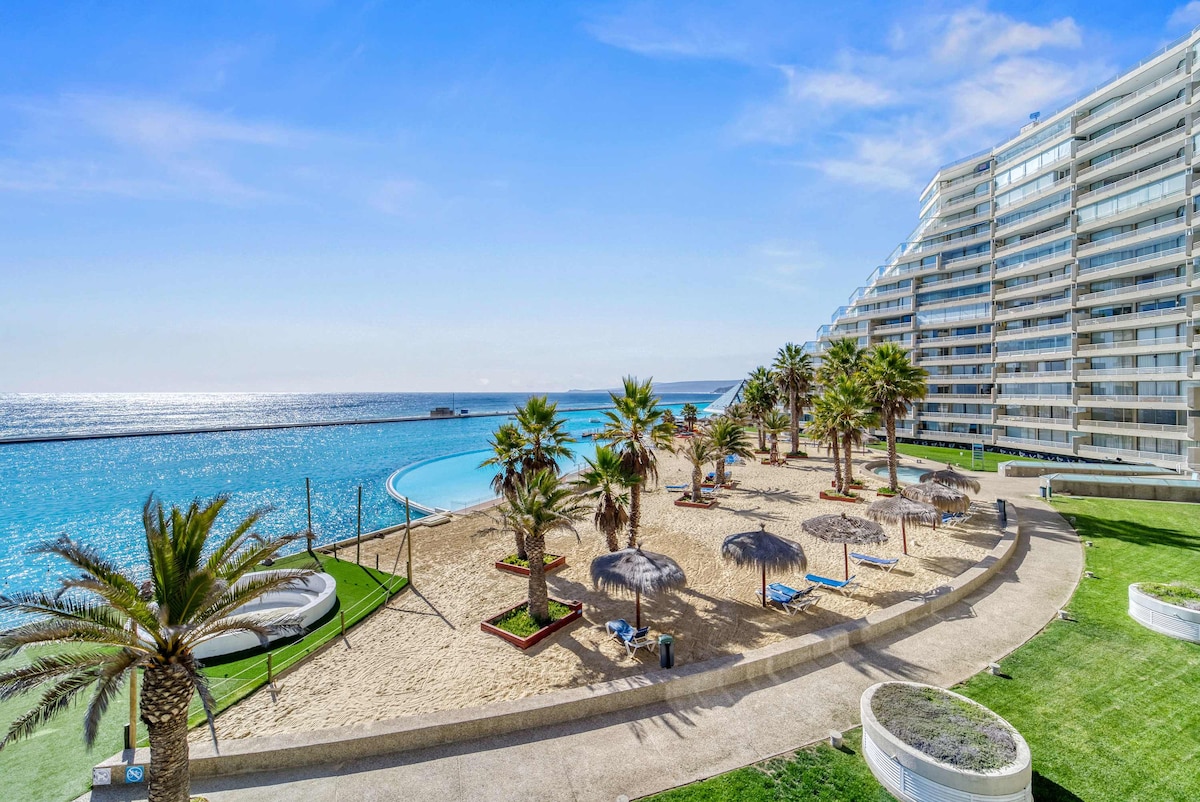 在聖阿方索德爾馬( San Alfonso del Mar )放鬆身心,這是一個在前線可欣賞美麗海景的地方。 您可以在露台上休息、烤肉,也可以在公寓內的家庭辦公室工作。 所有這些都伴隨著24小時全天候的壯觀海洋聲音播放列表。 距離Algarrobo幾步之遙,您將有機會使用該市的多種服務。