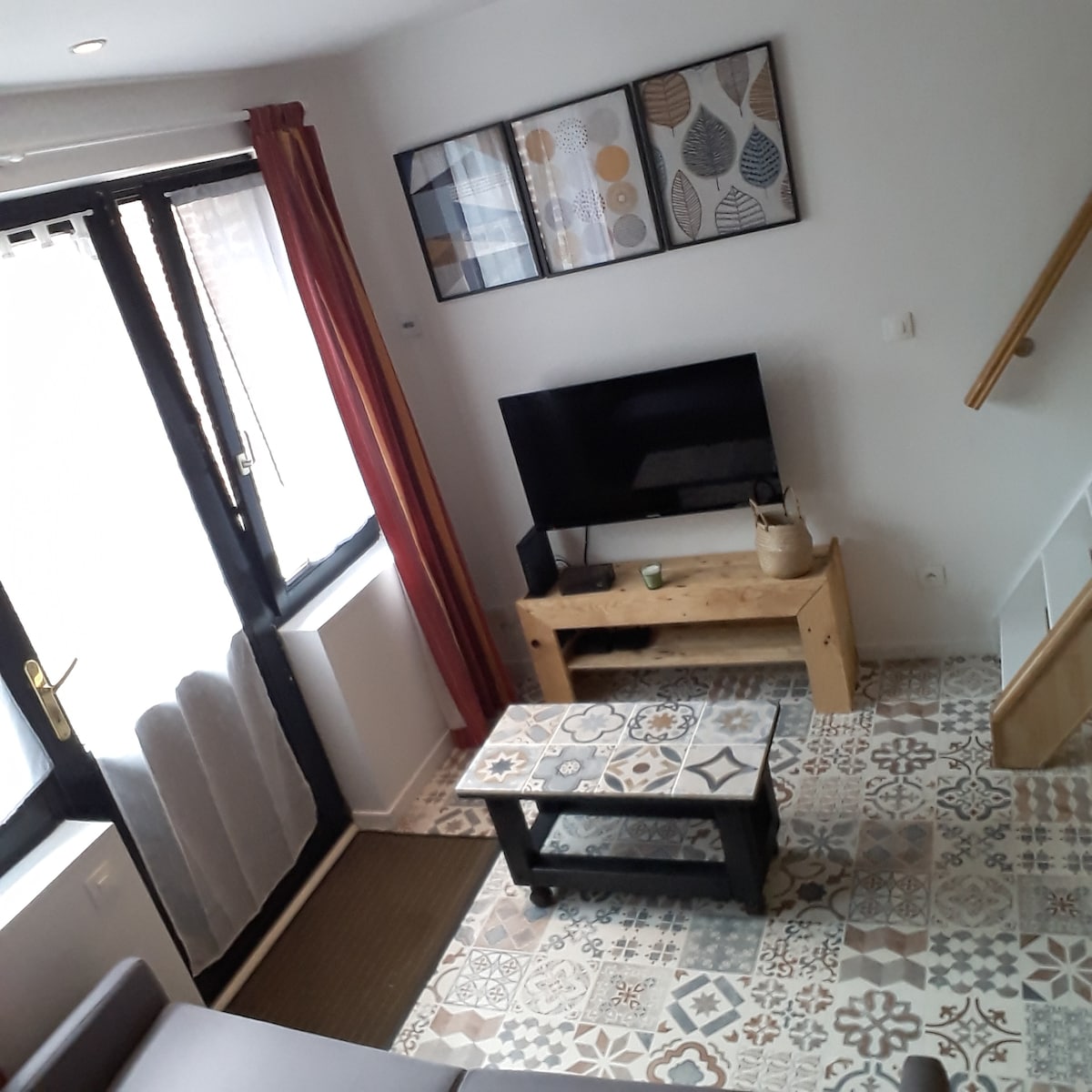 Résidence avec parking (fermé entre 22h et 6h, accès par code). Salon/cuisine : canapé convertible 2 places, TV, Wifi, four électrique, plaque au gaz de ville, bouilloire, cafetière Senseo, micro-ondes, vaisselle pour 4. Chambre 1 : lit 2 places 140x190 avec matelas de qualité , penderie. Salle d'eau : douche, lavabo, WC, lave-linge. (l'accès à la salle d'eau se fait par la chambre 1). Chambre mezzanine (sous pente) : lit 1 place. Accès par un escalier raide. Boite à clé connectée.
