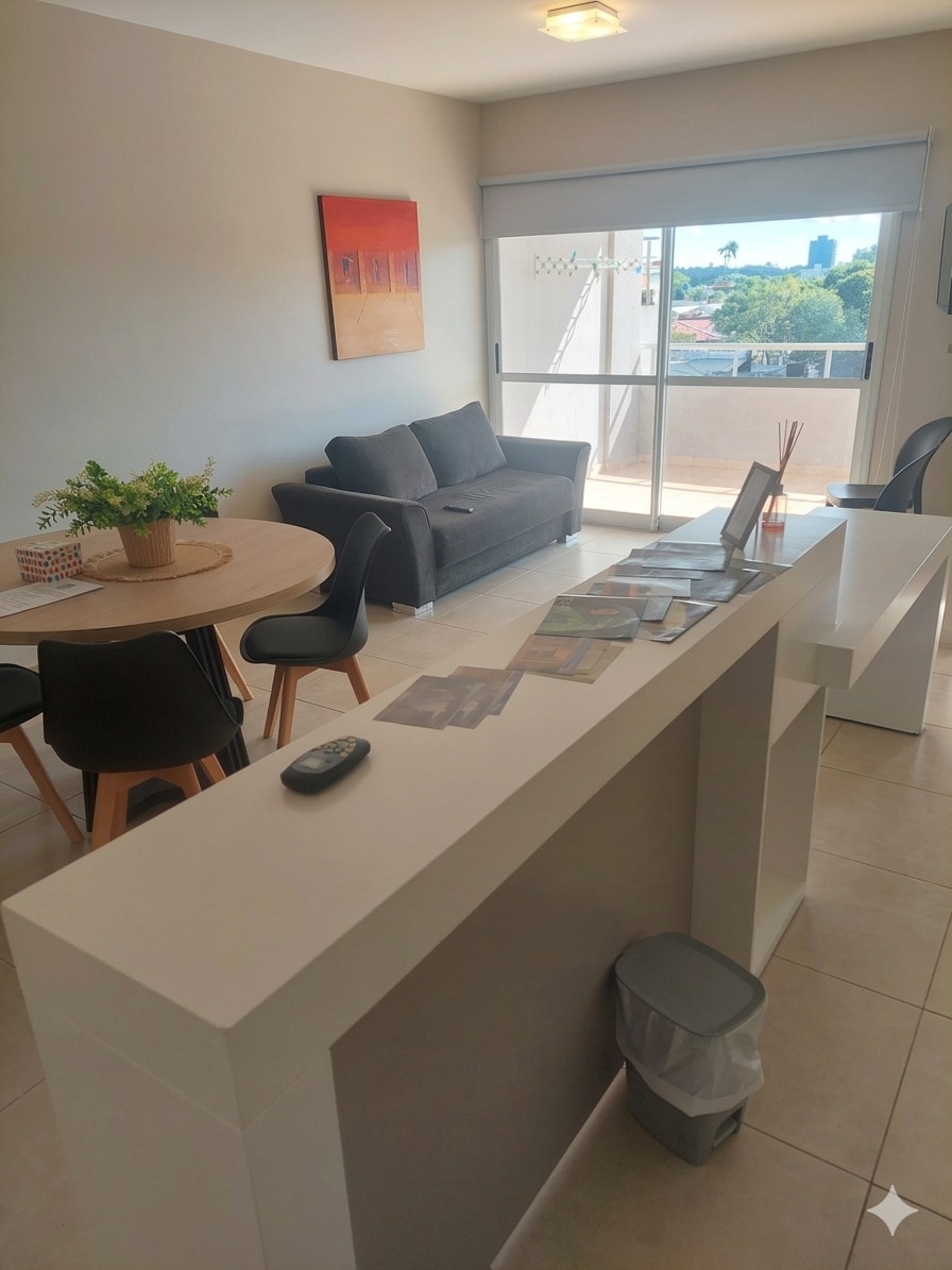 非常舒適的公寓,靠近市中心,位於海濱,距離波薩達斯-恩卡納西翁過境點僅幾公尺。 設施包括: 1 間廚房,配有爐子、冰箱、電熱水壺、微波爐、鍋具和餐具。 配有桌椅的寬敞餐廳。 客廳配有電視、桌子和一張非常舒適的扶手椅,可作為床使用。它有一個陽台,可欣賞獨特的景觀。 1 間帶陽臺的房間,可欣賞巴拉那河,1 張雙人床,配有床單。 洗衣房配有洗衣機、晾衣架和水槽。