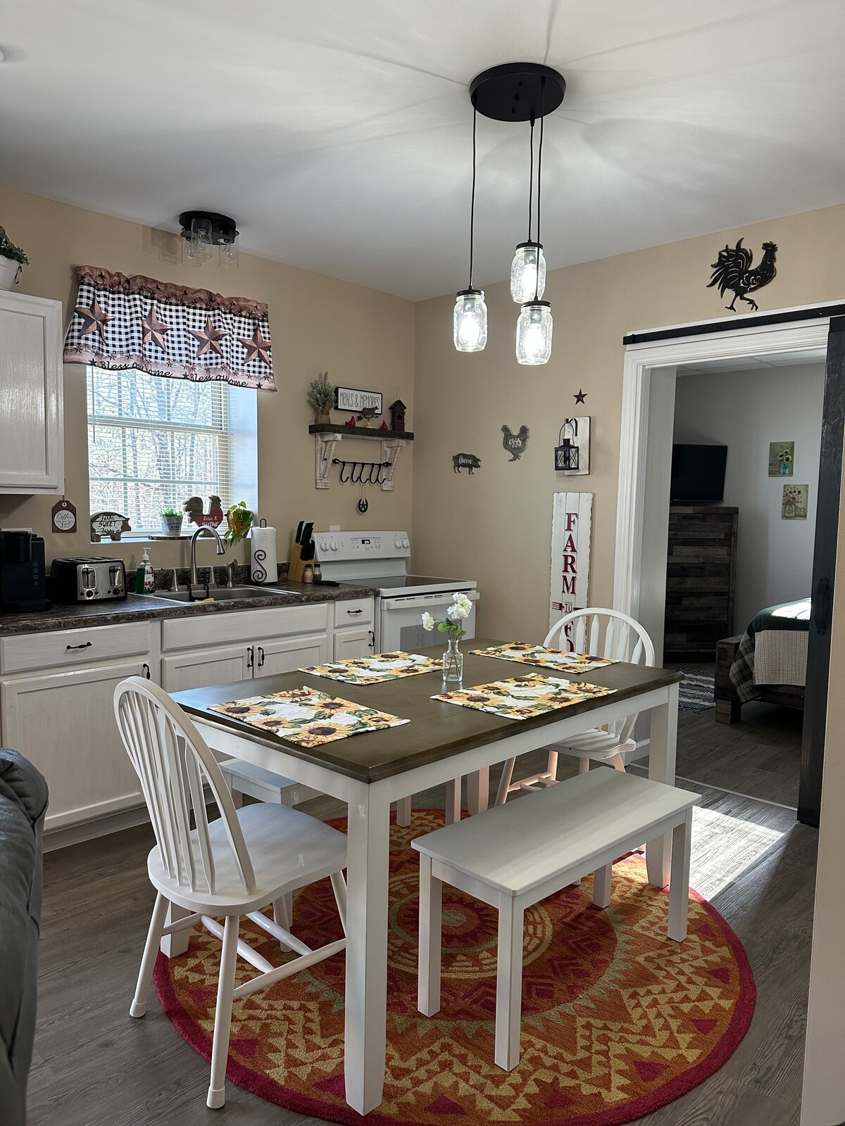 Relax and unwind in this cozy one-bedroom apartment featuring a king-size bed, a full kitchen, and a comfortable living area with a daybed and trundle for additional sleeping space. The apartment also includes a full-size bathroom with a shower and tub combo. The open layout offers the perfect place to rest, dine, and recharge. Whether you’re visiting for a quick trip or a longer stay, this apartment provides a simple, stylish, and comfortable space.