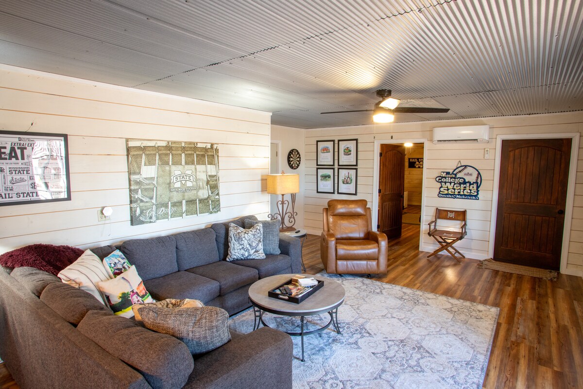 在House of Rivals, Cowbell Row體驗高級的比賽日生活:步行前往密西西比州立大學校園和Davis Wade Stadium。 這間高級3睡房/3.5浴室度假屋設有Green Egg烤架、營火休息室,以及美食咖啡、鬆餅和爆谷吧。 專為挑剔的粉絲和家庭設計,是參加SEC運動週末、車尾派對和創造永恆斯塔克維爾回憶的理想基地。 一定要參加DIY牛鈴體驗。 我們會請旅人裝飾並留下牛鈴。