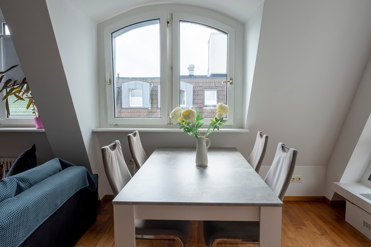 Our stylish two-bedroom penthouse in Schöneberg offers a unique ambiance with breathtaking views of the historic Gasometer. Bright, airy rooms with light-blocking shades ensure restful sleep, while the vibrant neighborhood, filled with cozy cafés, markets, and shops, adds to its charm. With excellent public transport connections, exploring Berlin is effortless. Experience the perfect blend of tranquility and city life in this exceptional haven.