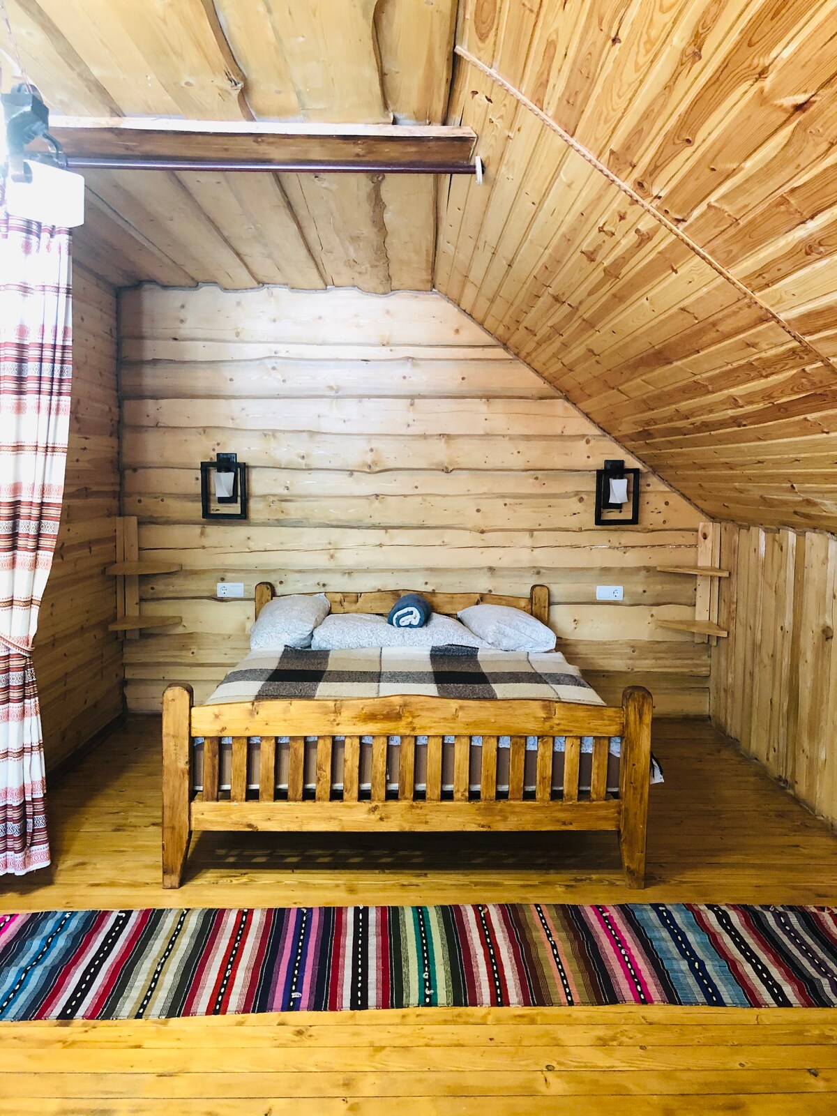 Номер знаходиться на 3-му поверсі дерев'яного будинку. Балконом виходить на річку. В номері є ліжко, розкладний диван, туалет-душ, кухня, балкон