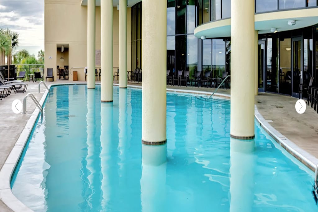 海景公寓/私人陽台/直達海邊 從寬敞的陽臺欣賞海景,直達海灘。度假村風格的設備與服務,包括室外和室內鹽水泳池、按摩浴池、桑拿房、匹克球球場、網球場和乒乓球桌。 全功能廚房、洗衣機和烘衣機、加大雙人床、標準雙人床。主臥室可欣賞全海景,並可直接前往陽台。主浴室包括花園浴缸、獨立淋浴間 我們提供免費的有蓋停車位。