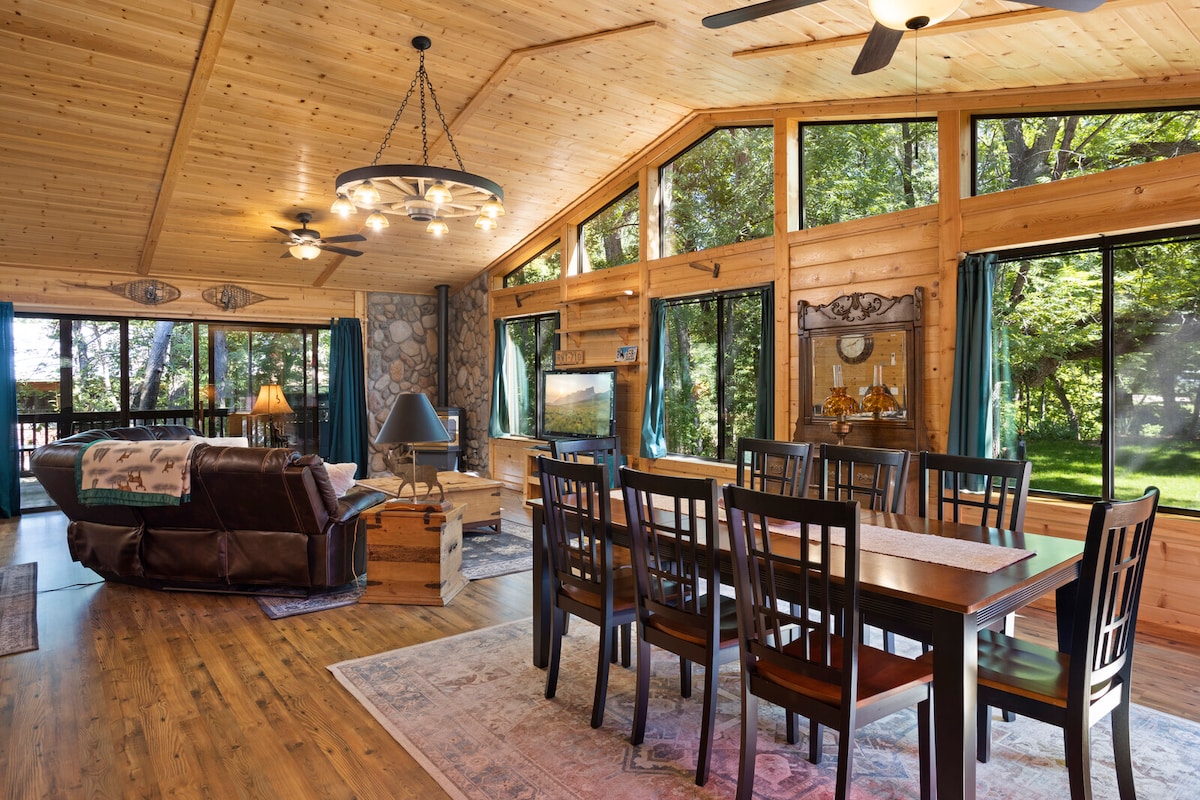 Spend days exploring Tonto Natural Bridge State Park or the Mogollon Rim! 🌄 Then head back to your cabin, open the garage door in the dining area, and enjoy a beautiful Arizona sunset. This Payson cabin is located directly on the East Verde River and you will hear the soothing flow of water from the deck. Step directly onto hiking trails or go fishing from your backyard. 🐟 Vinyl record player and cozy interior. This peaceful retreat will be the perfect spot to get some much-needed relaxation.