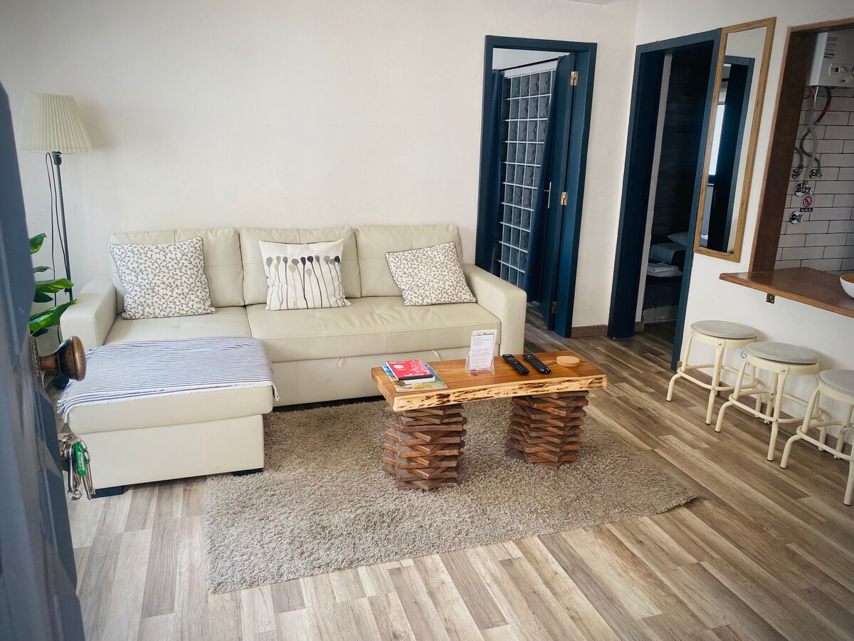 這套公寓是任何遊客的樂趣。 它融合了鄉村、現代和令人難以置信的便利,為那些有幸經過的人留下難忘的回憶。 進入這個美麗的空間後,您會找到一個開放的空間起居室和廚房。 這裏的廚房的設備齊全,可像在家一樣烹飪。