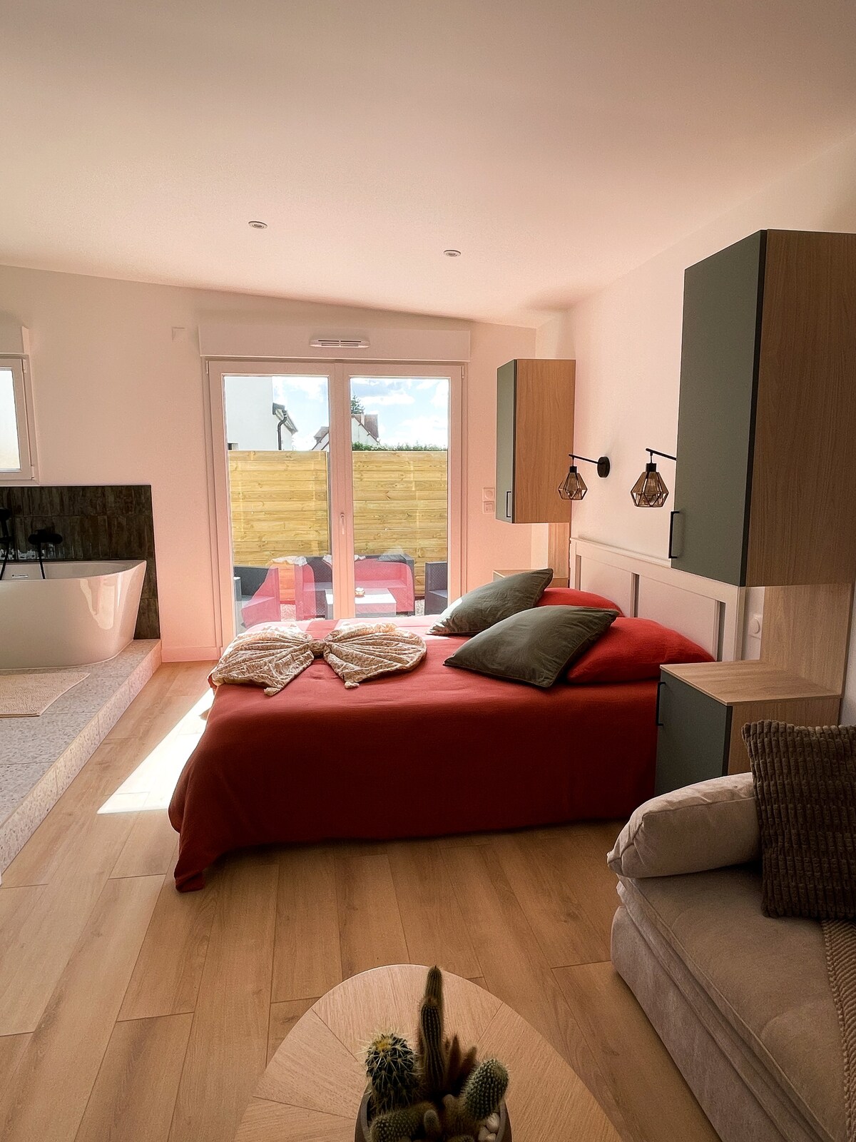 歡迎來到「Belle Aura」套房,這是一間建於2024年7月30平方公尺的全新現代套房,擁有18平方公尺的私人戶外庭院。 這個舒適和獨立的空間位於諾曼底卡昂平原的中心地帶,與我們的房子相連,但有自己的獨立入口。 享受鄉村住宿體驗,同時靠近生活必需品。