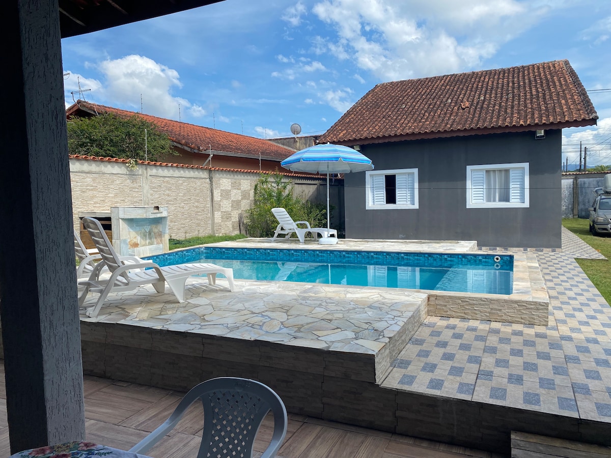 Casa aconchegante com bastante espaço aberto para tomar sol,curtir a piscina e um bom churrasco em família com amplo espaço coberto, apenas 340 metros da praia