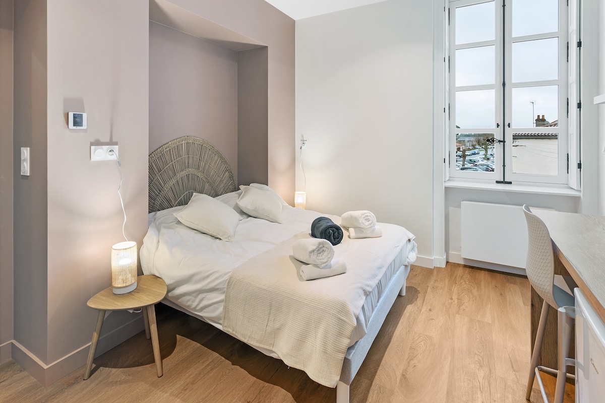 2021 年全新裝修,2025 年重新裝修的 45 平方公尺漂亮公寓。 位於韋爾圖南區,面對葡萄園,距離南極購物中心 5 分鐘。 從房源可直接步行前往散步。 距離南特市中心 20 分鐘車程。 公寓毗鄰我們的房子,有私人停車位。 非常適合工作日或週末度假! 安靜的街區,只能開車前往。