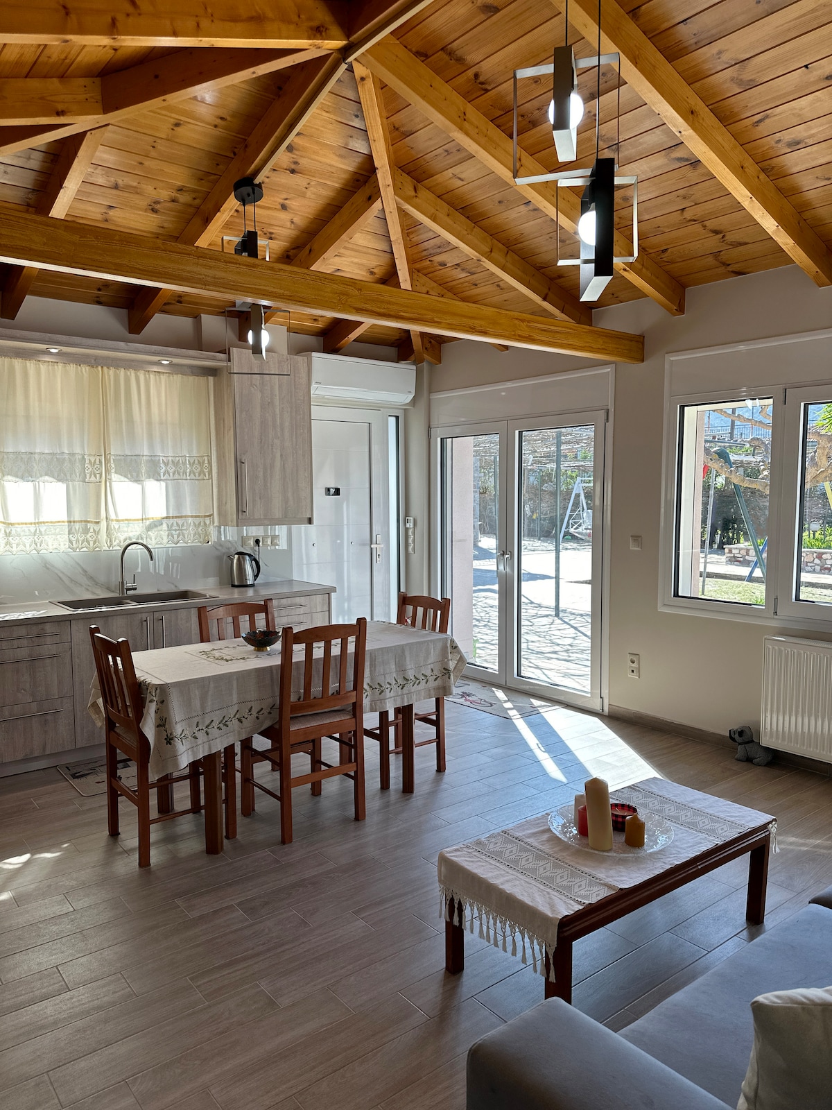 Petrothea是一間位於埃維亞島Vrysi村的兩層樓房屋,面積為100平方米,可俯瞰Koupa/Pugazi的美麗岩石和Dragonera教堂。 它位於一個地區的中心,可以在大自然中進行許多短途旅行和活動。 它由兩間臥室、一間開放式客廳(廚房)、2間浴室和露臺組成。 房子設備齊全,配有智能電視、WiFi、冬季的Pellet爐和空調,以及夏季的空調。 可舒適容納6人。