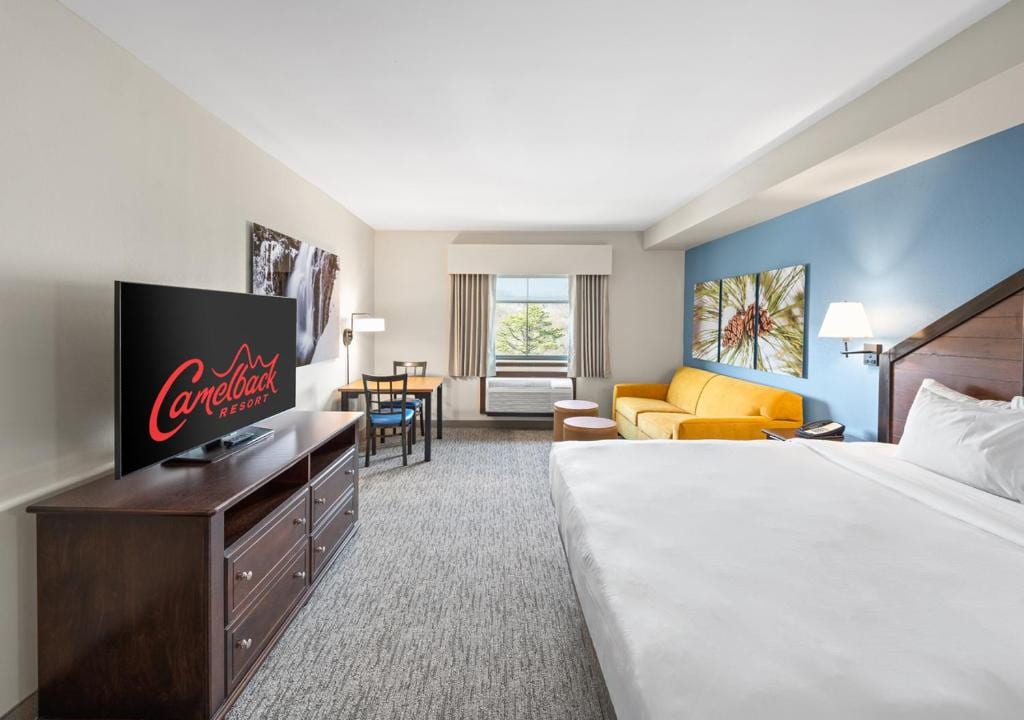 The resort is located in the iconic Pocono Mountains of Pennsylvania, offering a wealth of outdoor recreation for nature lovers. The historic town of Jim Thorpe is only a few miles away, with its picturesque streets and landmarks, including the Lehigh Gorge Scenic Railway. For a peaceful stroll, visitors can take a walk through the Delaware Water Gap National Recreation Area, or Hickory Run, Promised Land, and Big Pocono. Head to the Camelback Mountain Adventure Park for an exciting family fun!