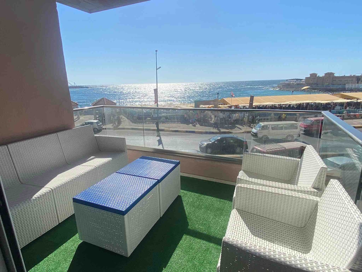 A beautiful beachfront apartment in the heart of Alexandria with stunning sea views from every room. Located on the 11th floor, it offers spacious, the apartment is fully air-conditioned, A large lounge, 3 bedrooms, and a fully equipped kitchen. Enjoy WiFi, satellite TV, and fresh linens, towels. Accommodating up to 6 guests, it’s perfect for relaxation. The vibrant location near the beach and main road may occasionally have sounds of city life during peak hours, adding to the lively atmosphere.