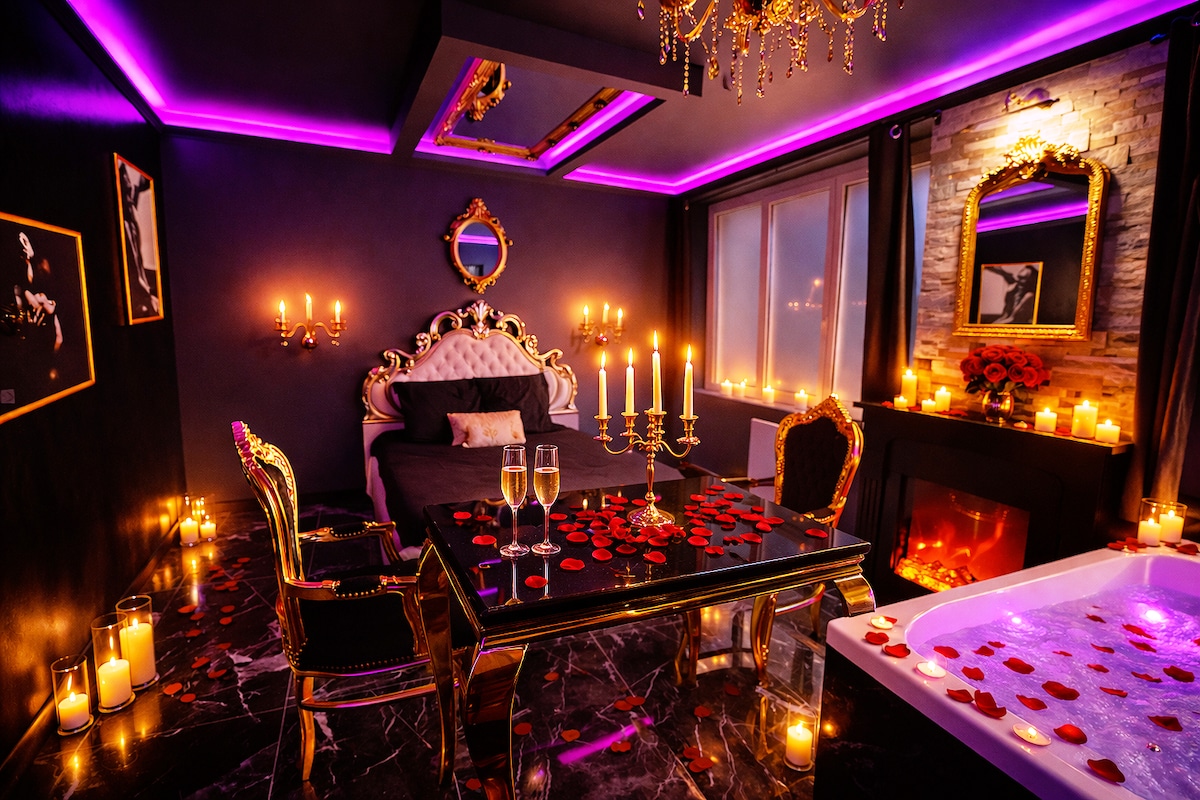 歡迎來到一個非凡的愛之屋!🌲 沉浸在森林的中心,享受超舒適的雙人床,頭頂上是閃閃發光的星空。✨ 在按摩浴缸中放鬆身心,四周環繞著綠意盎然的景色,在瀑布淋浴下,完全沉浸在大自然中。在壁爐旁🎬享受大螢幕電影之夜 並配有爆米花機。🍿 此套房將自然與奢華融為一體,為您帶來難忘的回憶,是浪漫住宿的完美選擇。❤️