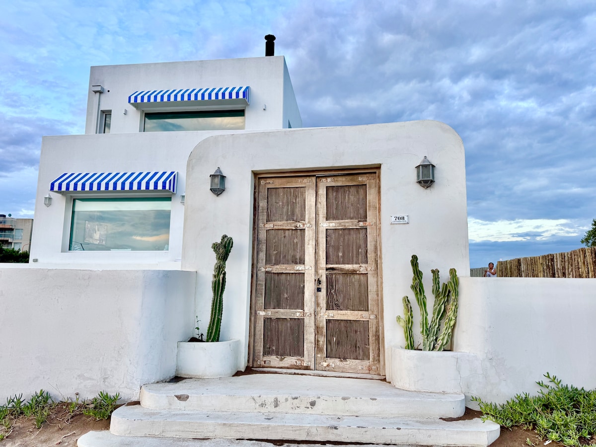 Casa de playa de estilo mediterráneo con pileta, jacuzzi y patio con pérgola y parrilla para disfrutar de un descanso inolvidable. Impresionantes vistas al mar desde todos los ambientes de la casa. Dos dormitorios en suite más toilette y baños exteriores con ducha. Detalles de lujo en un entorno sencillo y tranquilo, para disfrutar todo el año. Mantenimiento permanente. Puede alojar cinco adultos y dos niños. Incluye sábanas y toallas, vajilla y equipamiento completo de alto nivel.