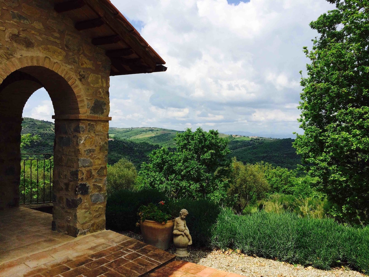 天堂之窗讓您嘆為觀止。作為我們唯一的房客,您將被無限的景觀、無盡的寧靜、鳥鳴聲和鹿叫聲所包圍。在山谷下方和步行時,您可能會看到狐狸、雪貂和野豬。收集豪豬羽毛。深呼吸! 位於羅馬和佛羅倫斯之間。靠近錫耶納、奧爾恰山谷和無數溫泉。一個私人的天堂,周圍有神聖的餐廳和山頂的古代珠寶,如蒙特普爾恰諾和蒙塔爾奇諾的高級葡萄酒。