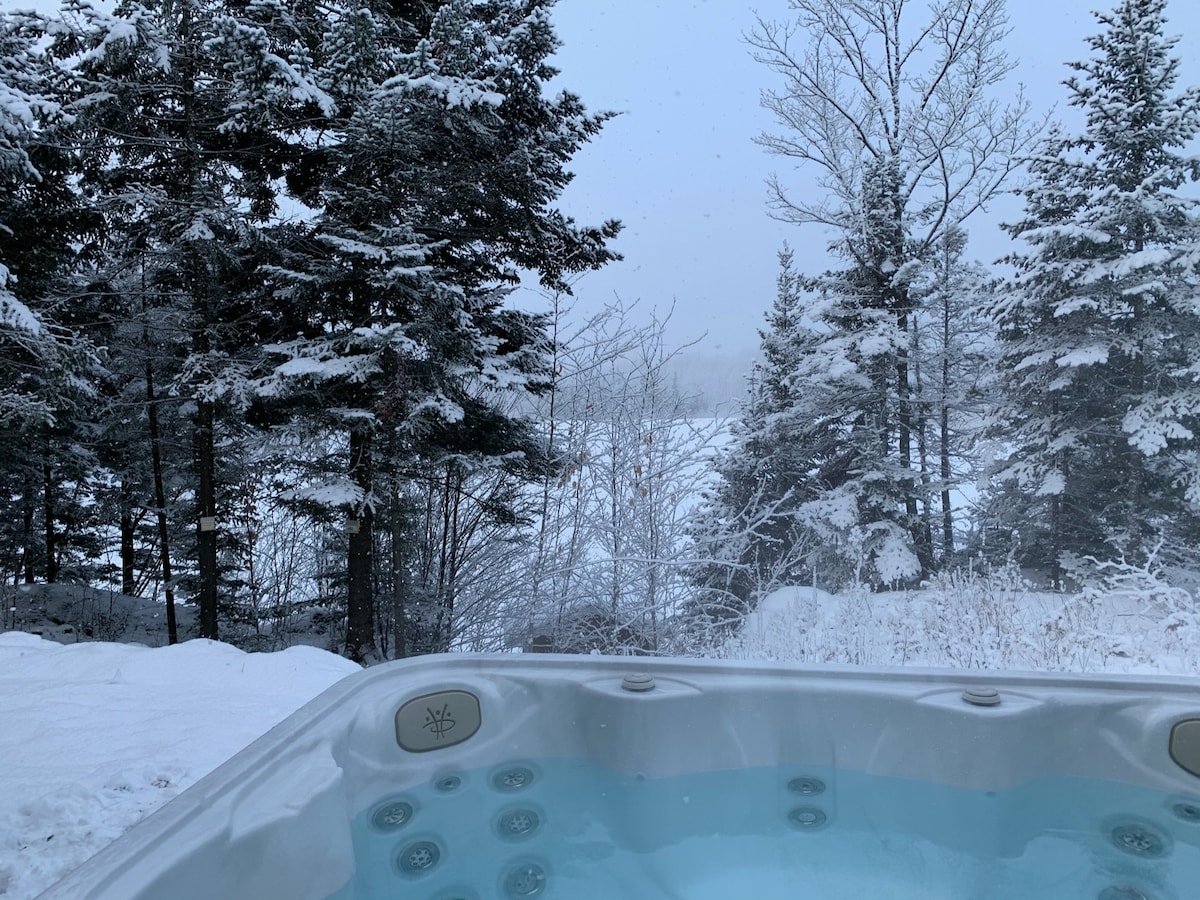 海濱豪華別墅,有6間寬敞的臥室和2個木製壁爐。 大型室外露臺配有沙發和露臺桌,配有水療中心和大型後院,是放鬆身心的完美場所,在樹林中享受寧靜的家,並欣賞蓬布裏安德湖的美景。 距離拉瓦爾45分鐘,距離蒙特利爾55分鐘。 我們位於Lanaudière地區的Rawdon中心。
