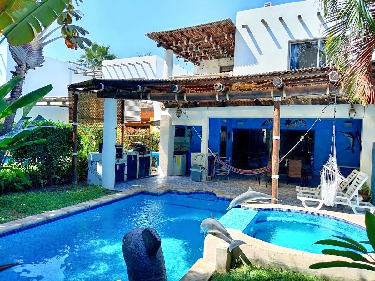 This Ocean access waterfront family & pet friendly home combines the best that Monterrico has to offer. Be part of amazing sunrises and peaceful sunsets with your family and the 4-leg furry best friend!! Enjoy a drink at the Tiki Ranch in front of the Ocean, or jump into the pool and Jacuzzi. The home has 3 bedrooms each with private bathroom and AC. You'll LOVE the dark sand beach, Tiki Ranch and outdoor grilling!! Take a walk to Tortugario, El Gariton and free your own turtle into the Ocean!!