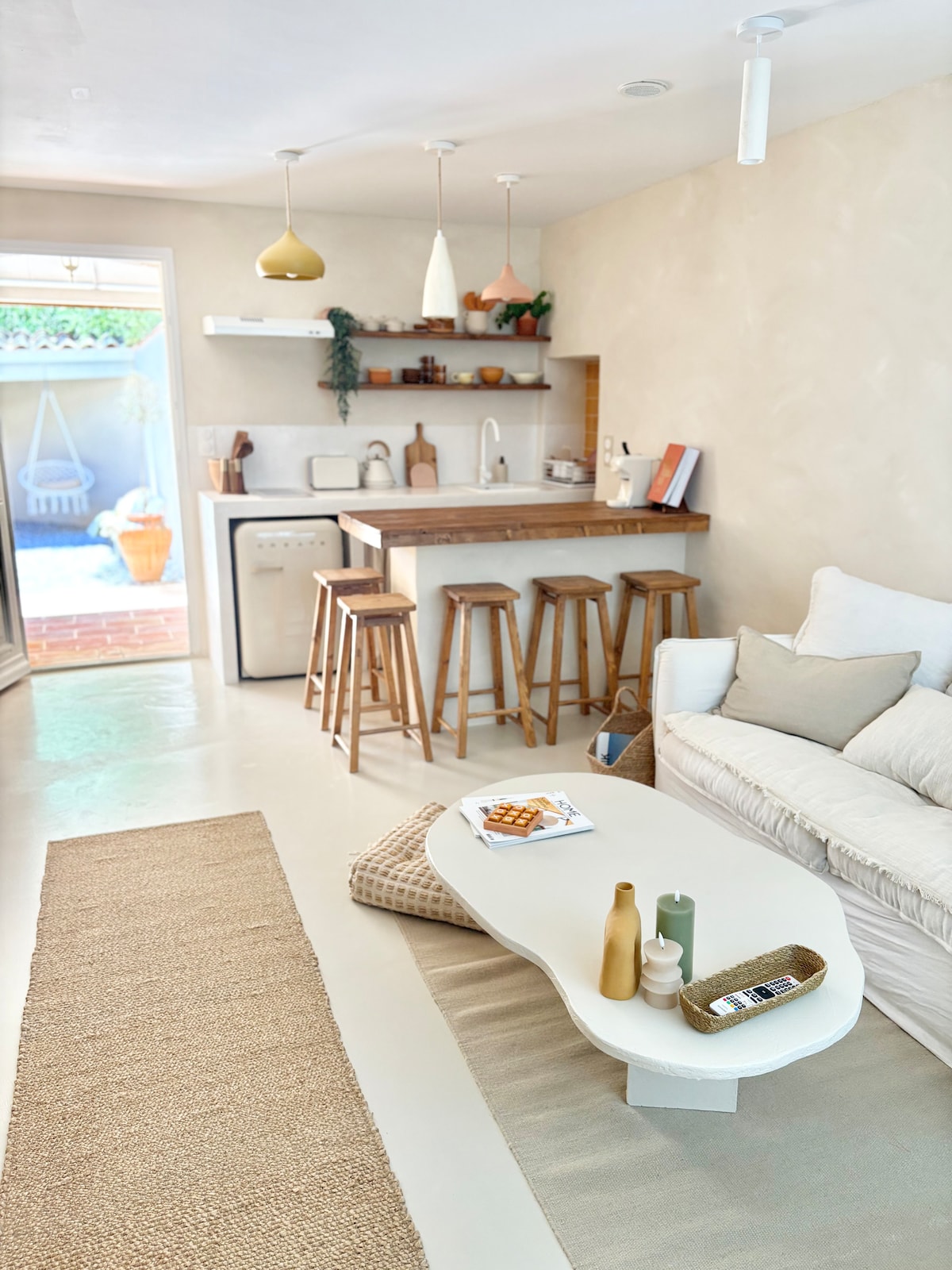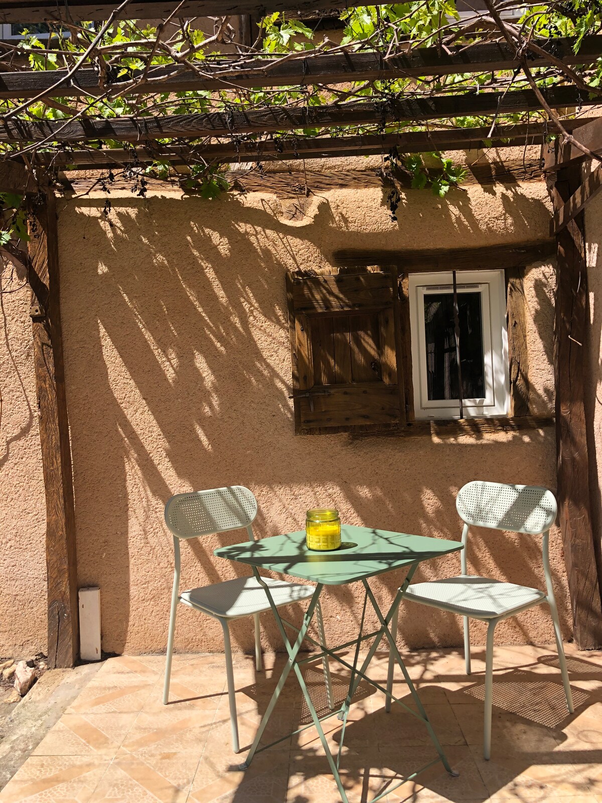 Petit T2 dans une cour pavée avec 2 oliviers, entrée indépendante et petite terrasse privée, dans notre corps de ferme. A 1 km du centre ( cars, boulangerie, poste, banque, supérette, boucherie, coiffure, pharmacie…) Kitchenette :plaques, frigo, micro ondes, Senseo, air frayer, lave linge, lit 160, linge de lit et serviettes fournis Pas de TV Sauna dispo :5€/heure pour 2 à 4 pers Canapé convertible 120cm 1 à 2 personnes en plus (10 euros en +/nuit) Lit BB à dispo Animaux non acceptés