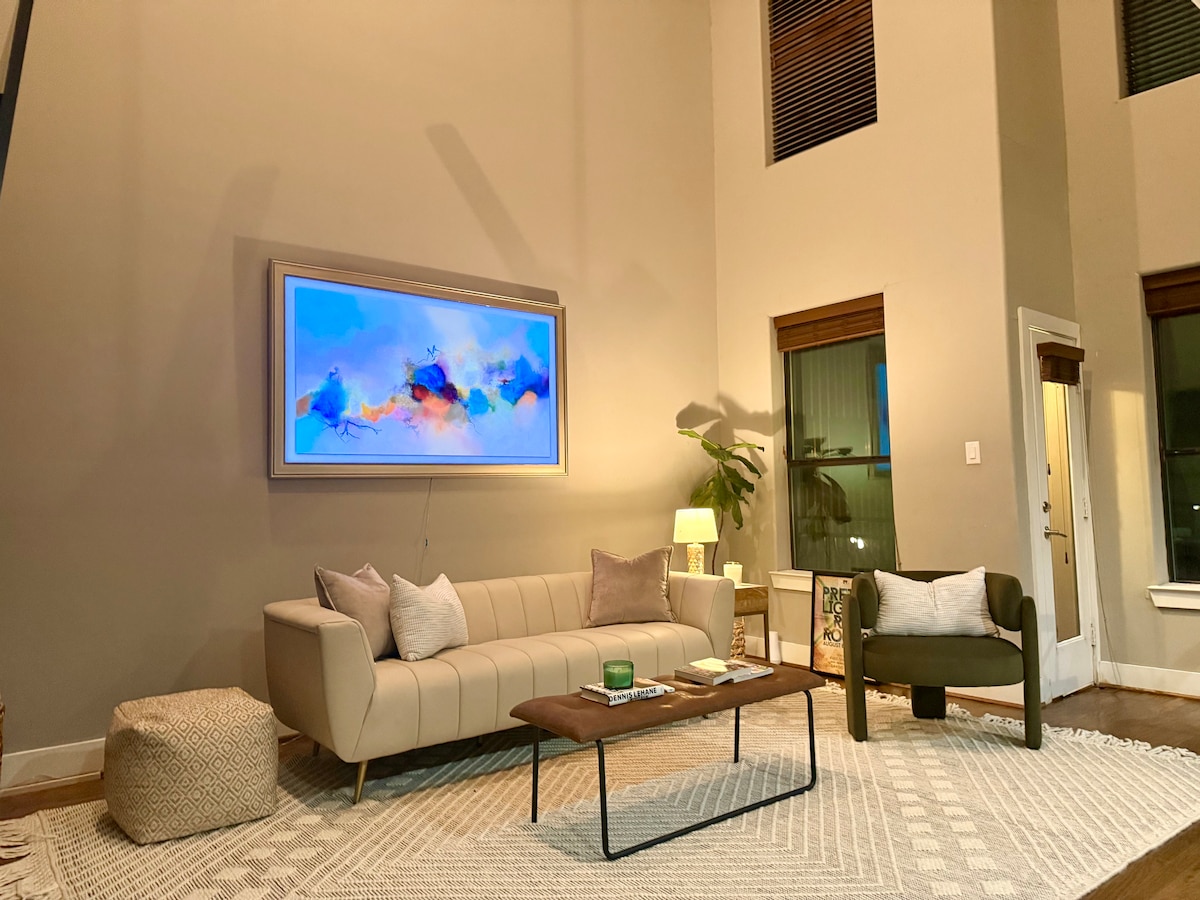Enjoy a stylish experience at this modern centrally located home in EADO. Great place for a quiet stay, yet just minutes from business hubs, entertainment venues, restaurants, shops, and Houston nightlife. *FREE onsite, two car garage parking *1000 MBPS Wifi *Full size Washer & Dryer *PureSteam XL High Powered Fabric Steamer & Iron(no more suitcase wrinkles) *65" 4K HDTV in Living Room & 50" in Bedrooms * Gorgeous Photo Wall *High Quality Comfortable Mattresses for a great nights sleep