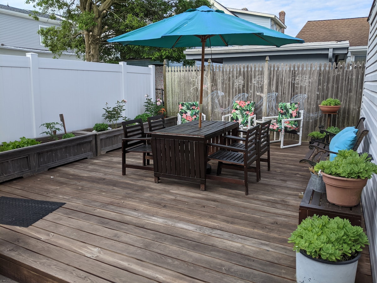 距離海灘、木板步道和Morey 's Amusement Piers僅3個街區。這間迷人的2間臥室度假牧場最多可供4位房客入住。 享受神奇的共用庭院和噴泉。 沒有有線電視,但提供WiFi。 還有智慧電視和DVD播放器。 步行即可抵達餐廳、Wawa、超市和郵局等各種便利設施。 15分鐘即可抵達維多利亞開普梅(Victorian Cape May)和郡立動物園。距離大西洋城僅45分鐘。 中央空調提供5/15-10/15。 10/15-5/1提供暖氣。