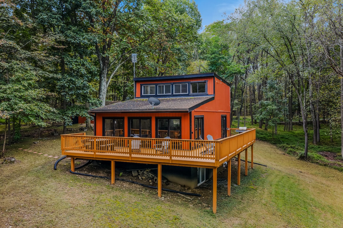 *Amazing views on the expansive deck *Pool table/foosball/board games *Classic arcade table with 60 games to play *Indoor wood stover with firewood provided *Private access to community river lot 2 miles away *FAST reliable Wi-Fi on Fiber *8 acres of private wooded land, no neighbors in sight *Lighted outdoor fire pit with complementary firewood *20 minutes to Berkeley Springs, spas, restaurants, shopping! *Board games, toys, cards! *Family friendly with complementary pack n play and high chair