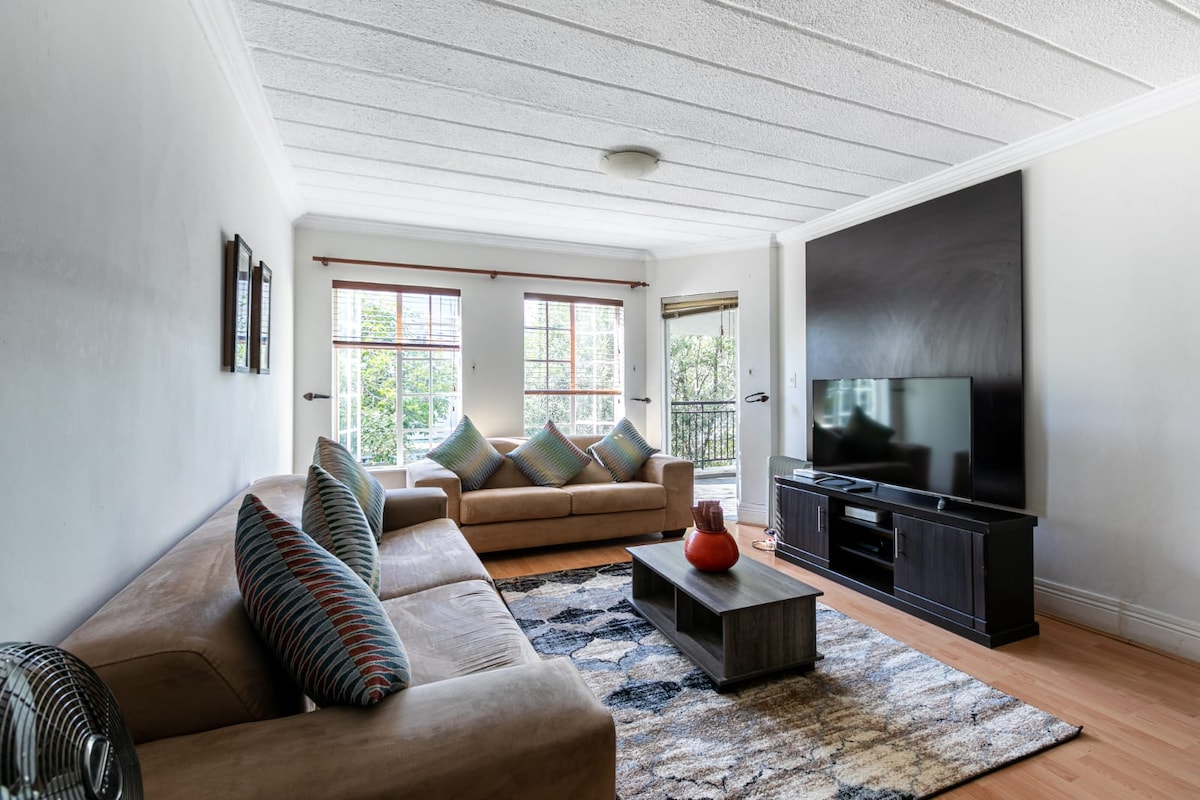 這間陽光明媚的一樓公寓位於綠樹成蔭的赫林漢姆( Hurlingham ) ,保持溫暖。 我們有完全離網供水! 我們明亮的公寓適合在桑頓工作的高管或前往桑頓的遊客。 我們的房源有過濾井水,非常安全,配有警報系統、橫樑、電柵欄、閉路電視和武裝反應。 房源是獨立的,可俯瞰花園。 超高速光纖網路@ 20mb。 乘坐Uber只需5分鐘即可抵達Sandton。 1輛車的安全停車位。