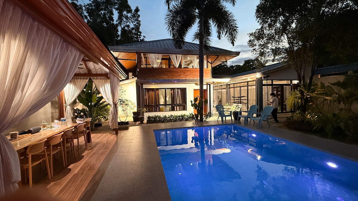 便利設備 ✓ 全空調玻璃別墅( 1間配有2張標準雙人牀的臥室) ✓ 1間額外的免費臥室 ✓ 迷人的遊泳池( 3.5英尺至5英尺) ,配有RGB燈光 ✓ 寬敞的涼亭 ✓ 烤肉區 拉奈區(✓Lanai Area) ✓ 戶外廁所和配備小便池的浴室 ✓ 戶外淋浴間 ✓ 設備齊全的戶外廚房(包括炊具和餐具) ✓ 戶外酒吧 ✓ 免費WiFi和NETFLIX存取 配有桌椅的✓花園區域 ✓ 安全停車位,最多可停放7輛車