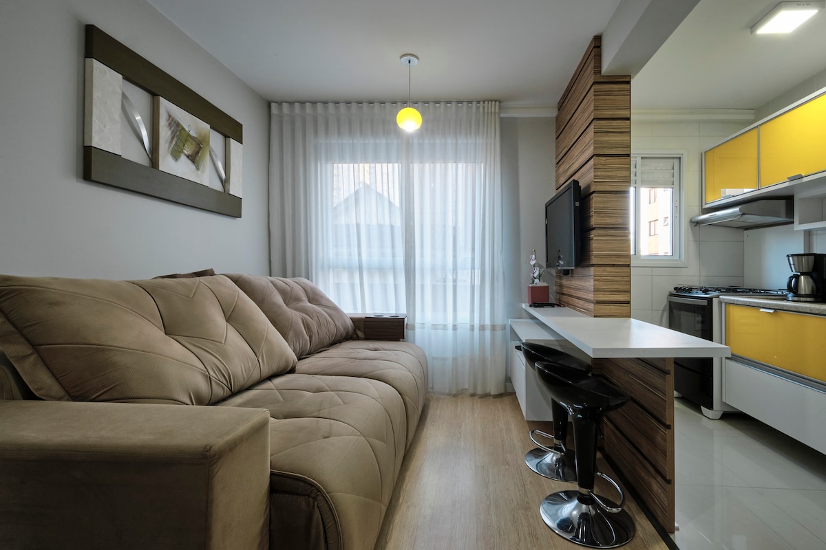 Easy Life José de Alencar 公寓 全新舒適的公寓,配有套房、空調、寬敞的陽臺、車庫和自動化出入口。配備700 Mbps超高速網路,並遵循嚴格的清潔標準。 地理位置優越,距離市場、藥店和餐廳500公尺,距離市中心和UFPR 5分鐘。 精心設計的房源,每一個細節都提供舒適、功能和時尚。