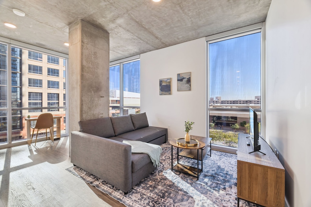 Stay in the heart of Downtown Phoenix! This bright studio features a full size bed, sofa bed, dining area, fast Wi-Fi, and a smart TV. Just steps from Roosevelt Row, bars, cafes, museums, and Chase Field. Perfect for business travelers or couples. Enjoy stylish decor, a fully stocked kitchen, self-check-in, and cozy vibes. Ideal for a city escape or work trip. Walkable, modern, and convenient—your Phoenix base awaits!