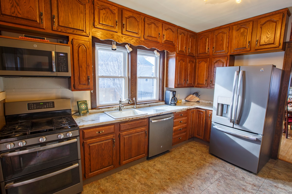 豪華1400平方英尺公寓。所有電器,包括洗衣機和烘乾機。快速網絡和有線電視。靠近飯店、雜貨店和Schells Brewery,步行即可抵達。街對面有鋪砌的自行車道。套房非常適合來新烏爾姆(New Ulm)的工作人員,需要非常舒適的短期或長期住宿。也非常適合週末放鬆身心。我們有時會彈性處理房客人數。如果超過3人,需要事先批准。第二張床是一個小房間的日式床墊。